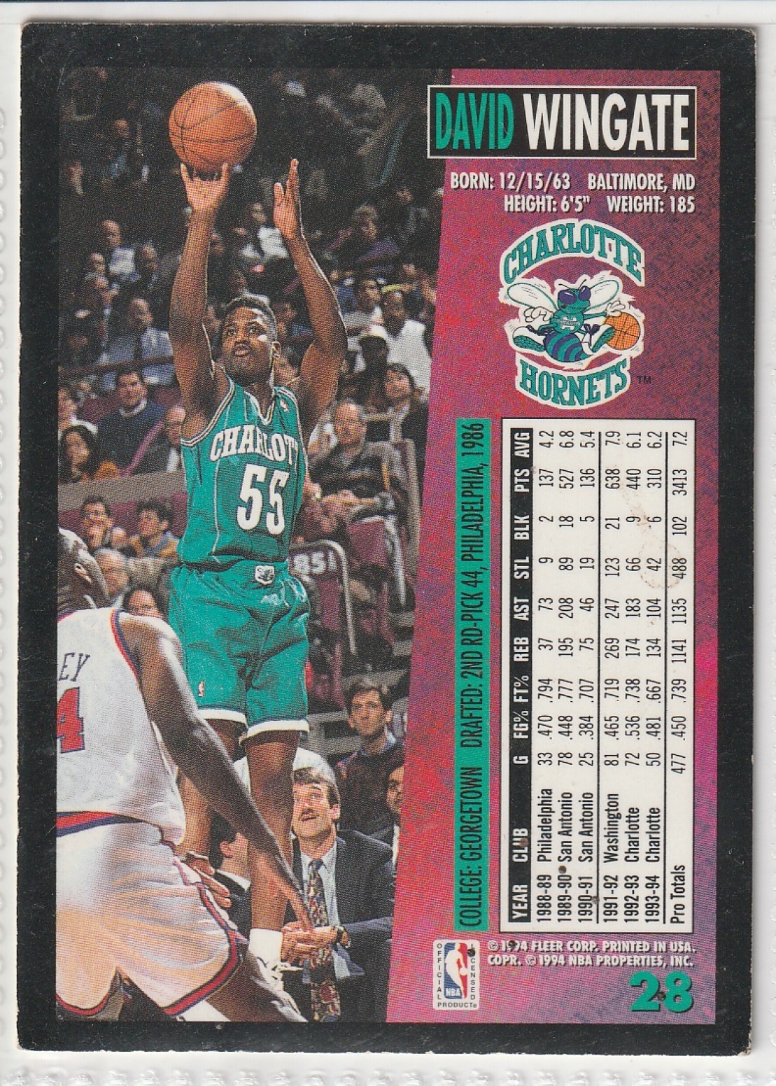 1994-95 FLEER #28 DAVID WINGATE 🏀 NBA BASKETBALL CARD 🏀 GOOD Condition 🔔 Series 1 💨