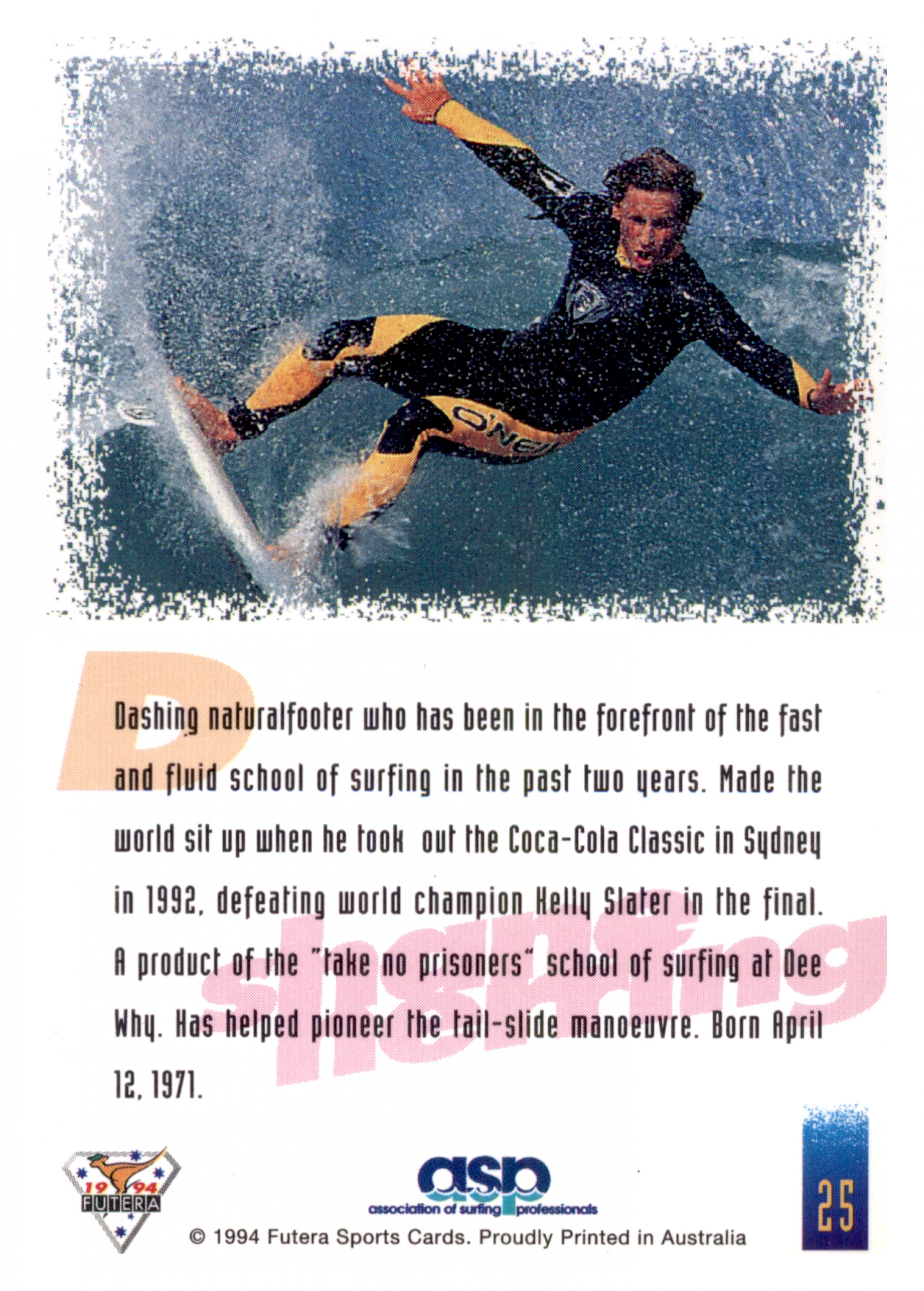 1994 FUTERA HOT SURF CARD 25 SHANE HERRING