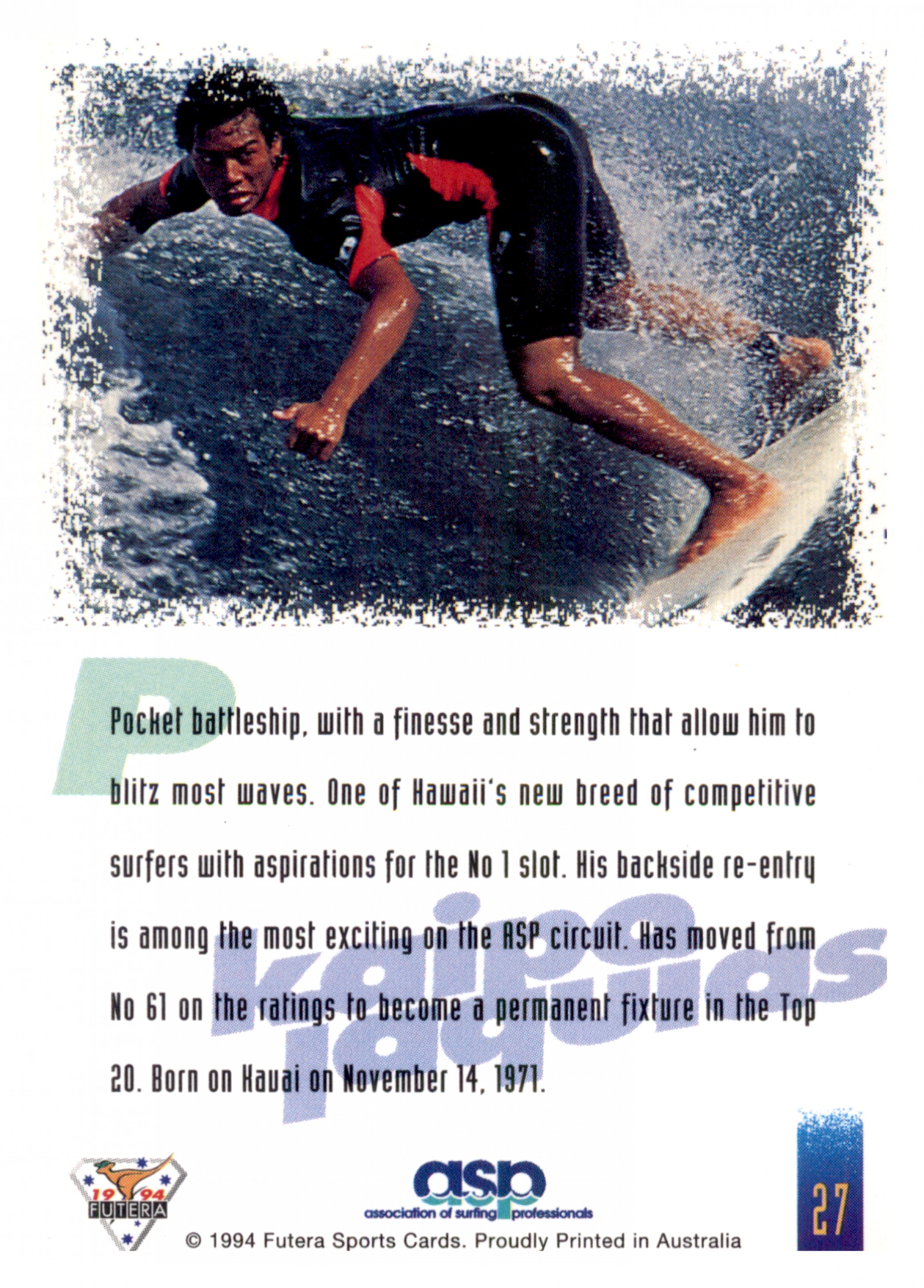 1994 FUTERA HOT SURF CARD 27 KAIPO JAQUIAS