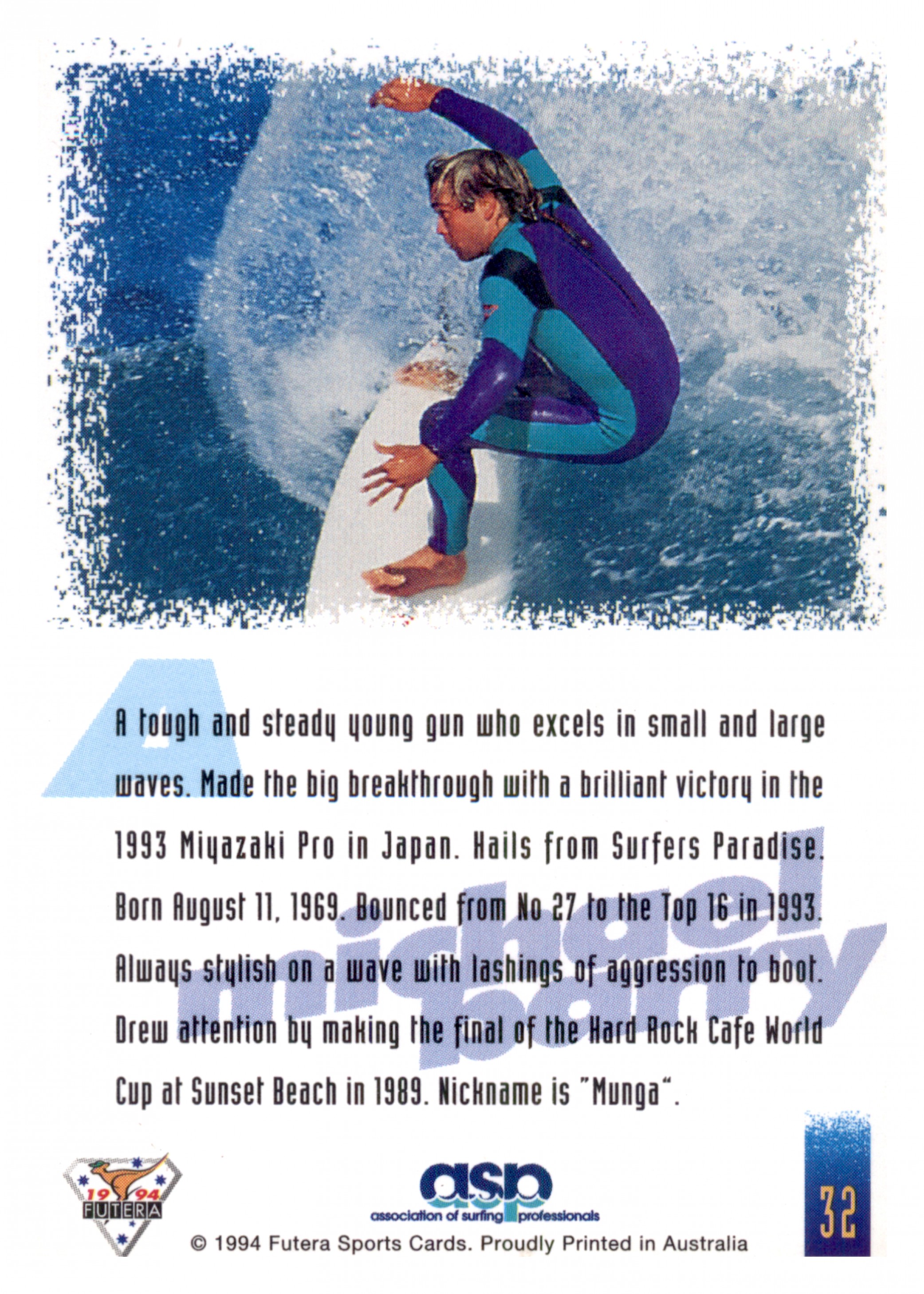 1994 FUTERA HOT SURF CARD 32 MICHAEL BARRY