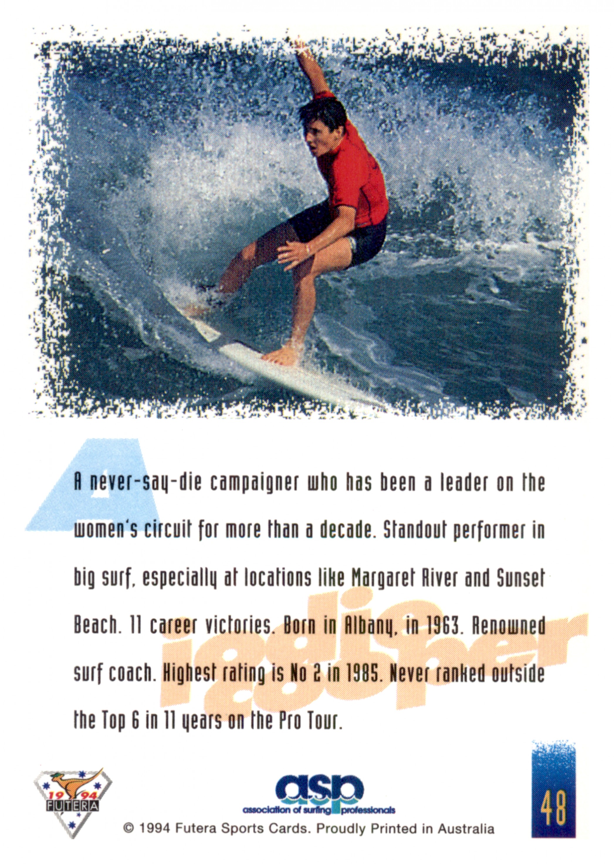 1994 FUTERA HOT SURF CARD 48 JODIE COOPER