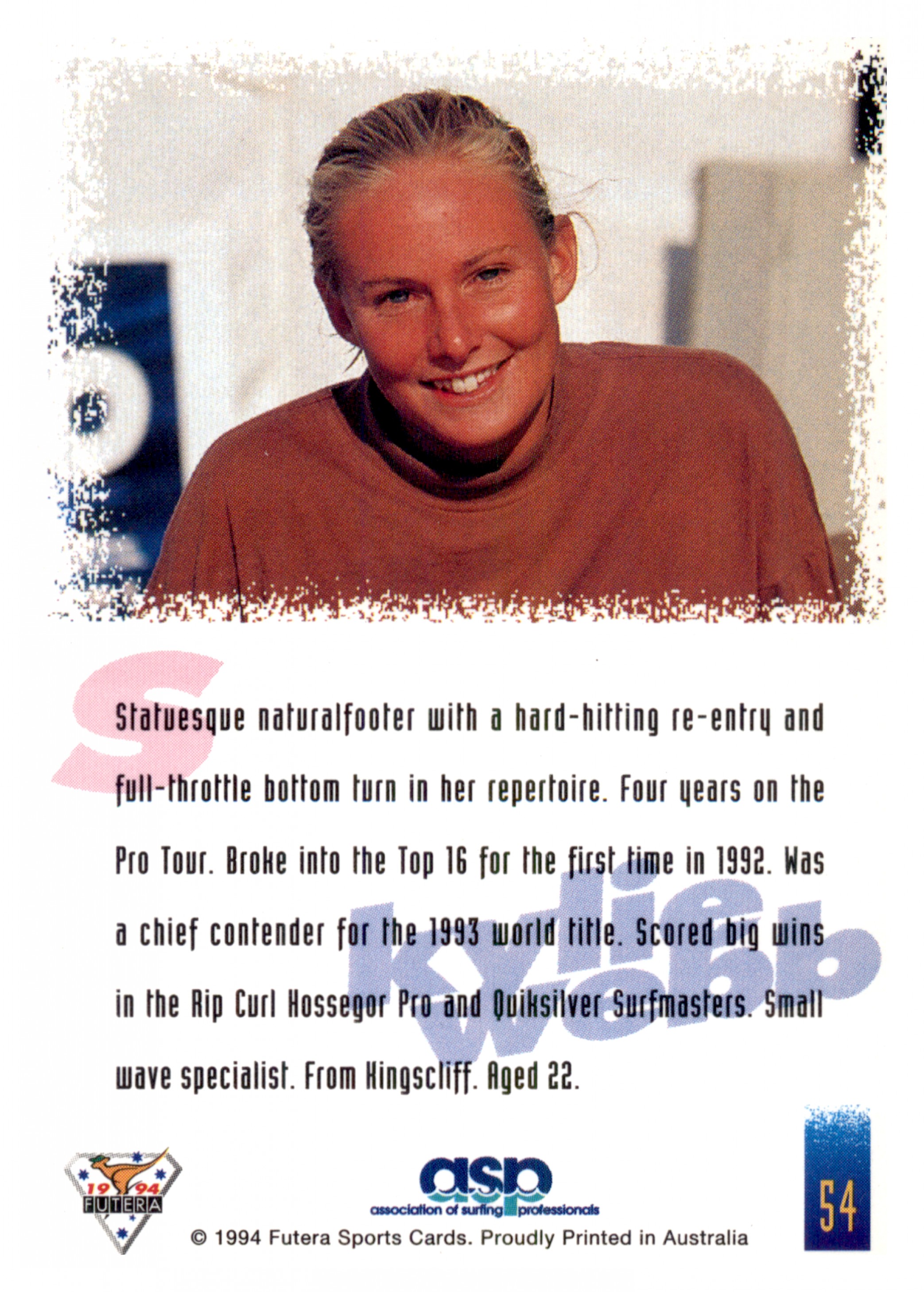 1994 FUTERA HOT SURF CARD 54 KYLIE WEBB