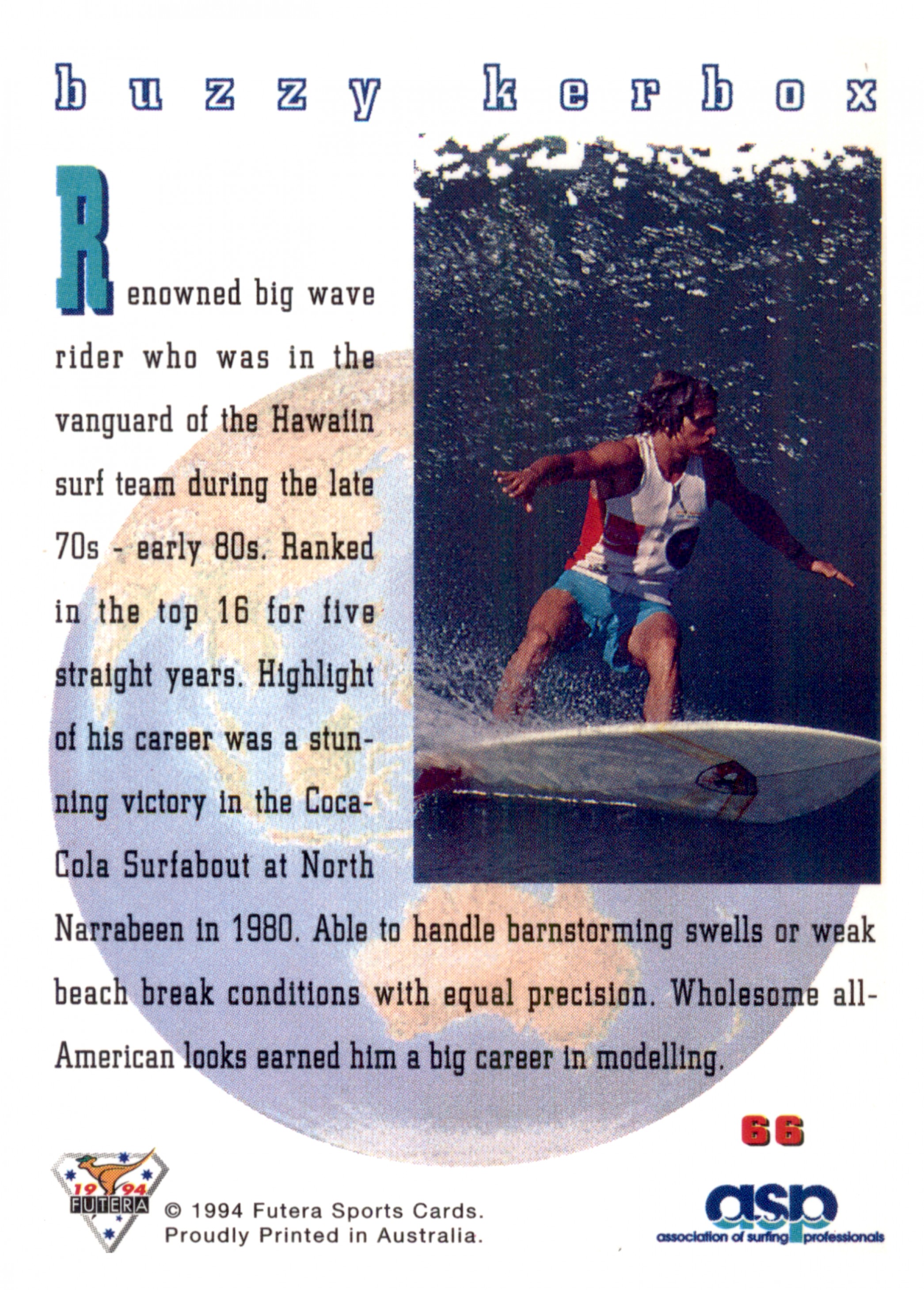1994 FUTERA HOT SURF CARD WORLD TOUR 66 BUZZY KERBOX