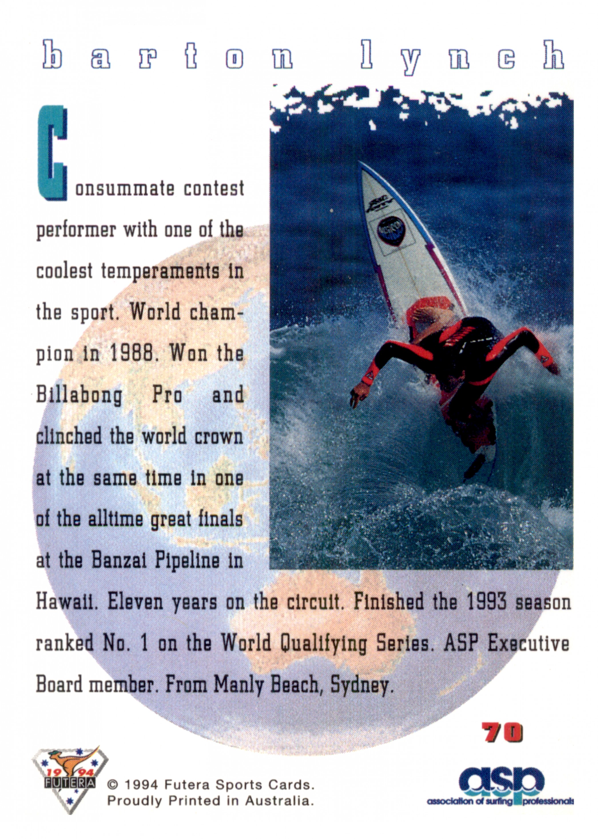 1994 FUTERA HOT SURF CARD WORLD TOUR 70 BARTON LYNCH
