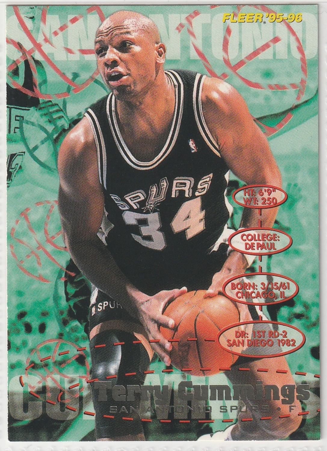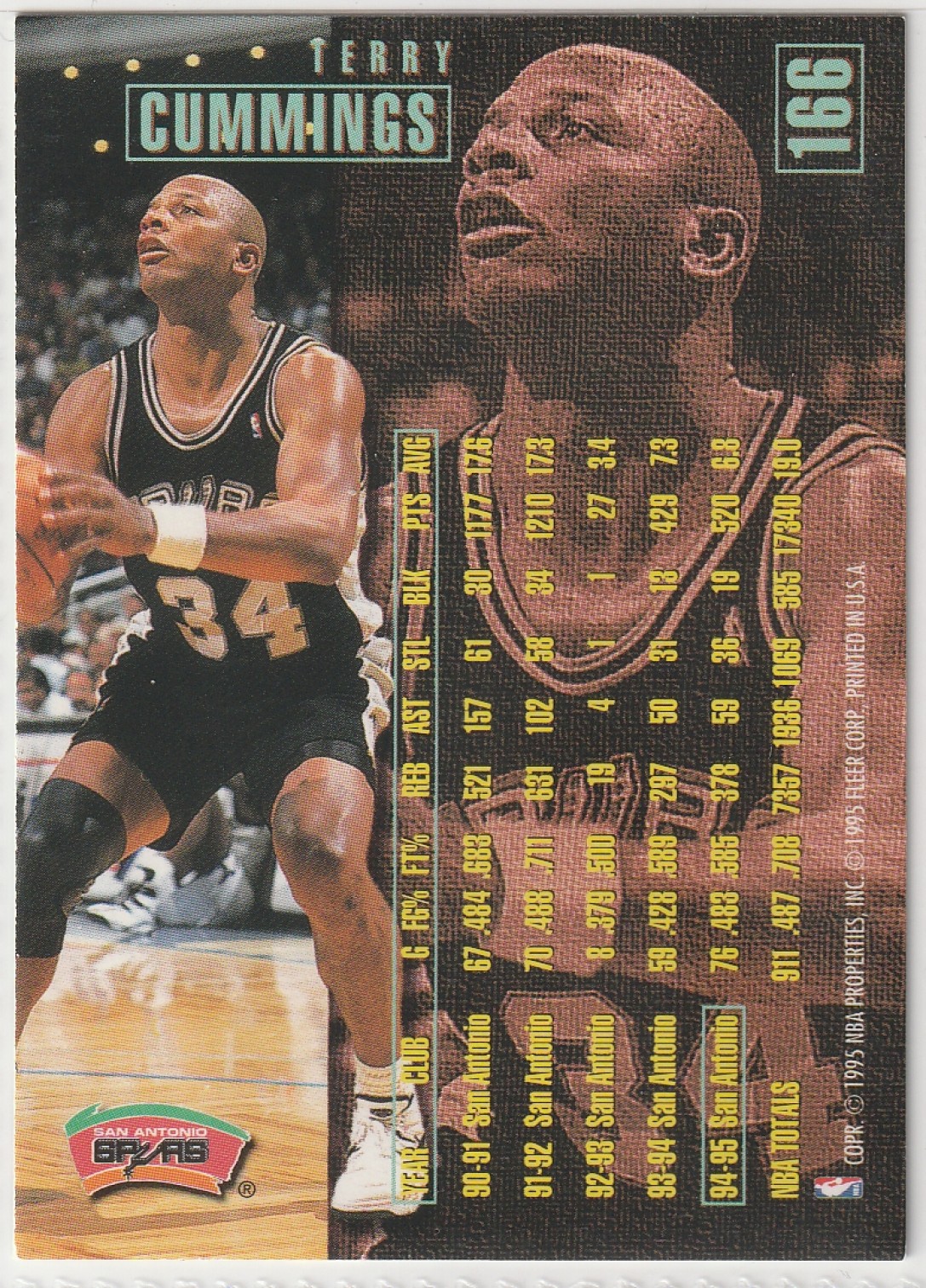 1995-96 FLEER #166 TERRY CUMMINGS 🏀 NBA BASKETBALL CARD 🏀 EX 🔔 Series 1 💨