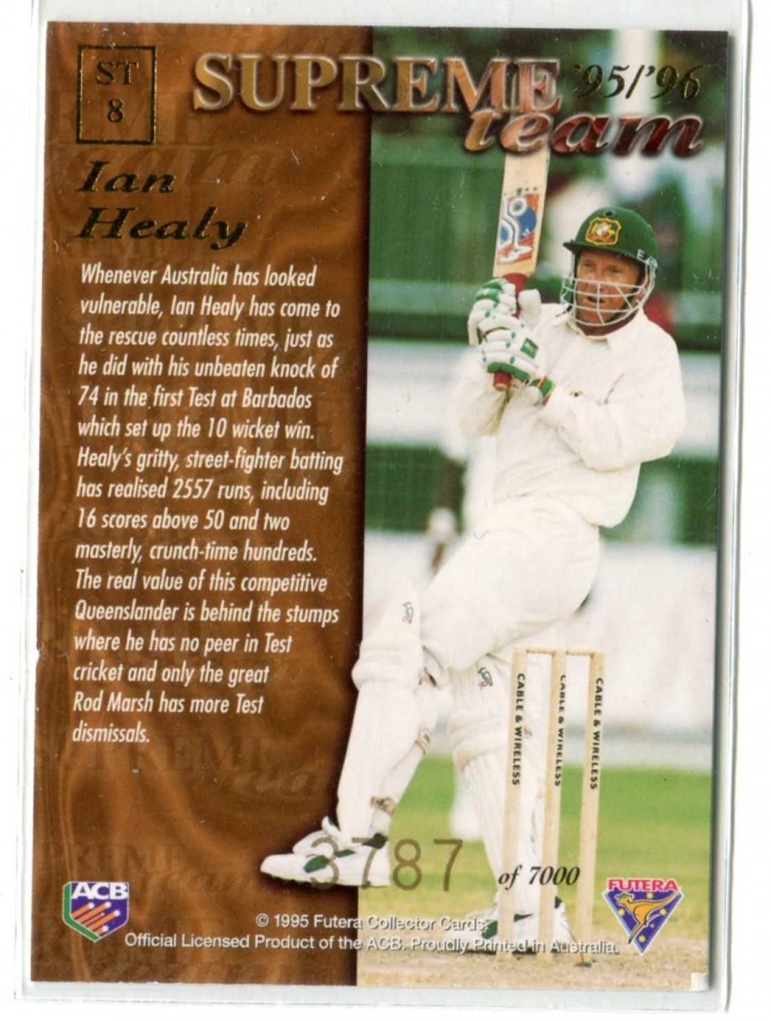 1995-96 Futera Cricket Supreme Team ST8 Ian Healy #d/7000 - Australia