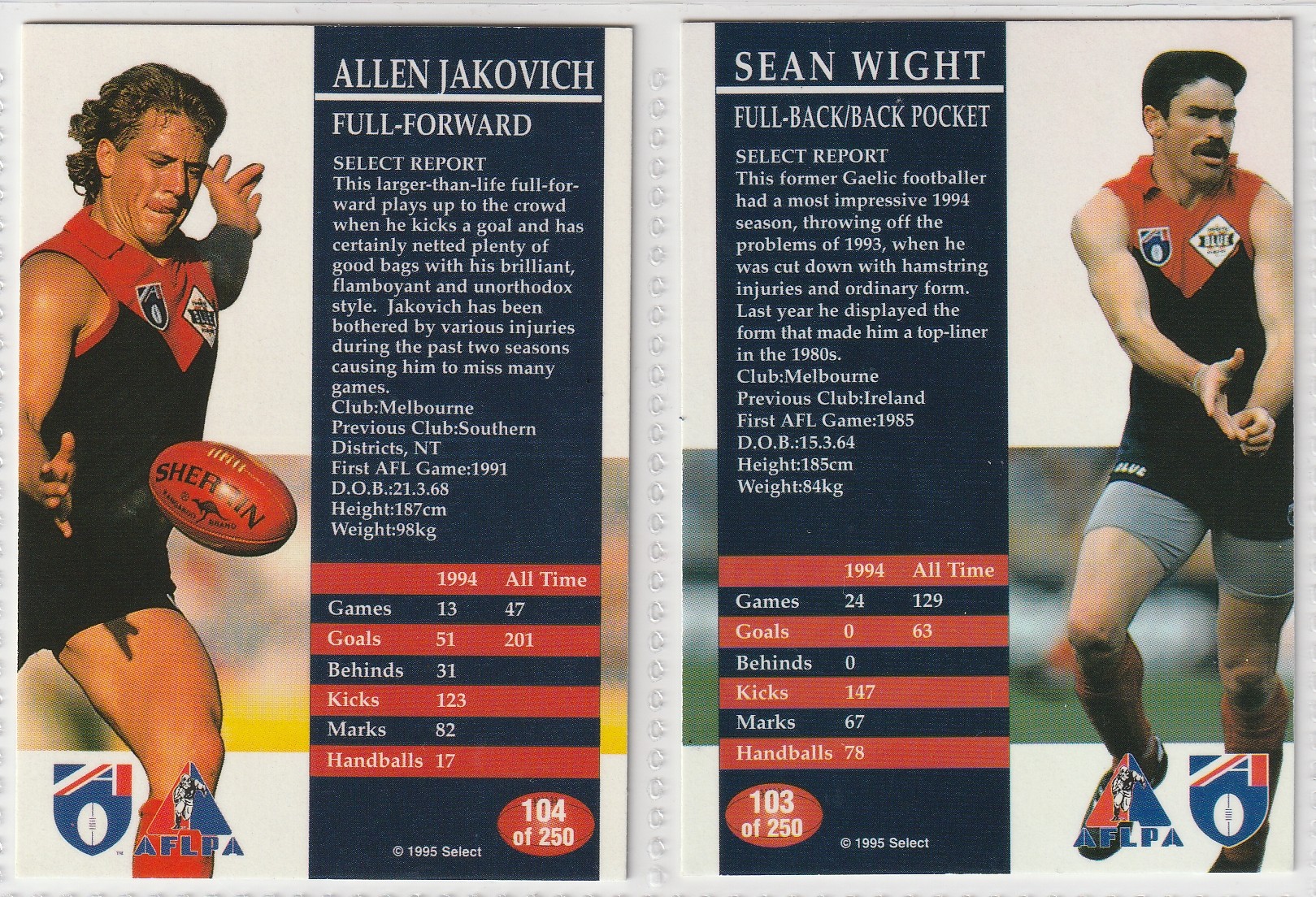 1995 AFL SELECT Series 1 - 104 ALLEN JAKOVICH 🏉💥🏉💥🏉 AFLPA
