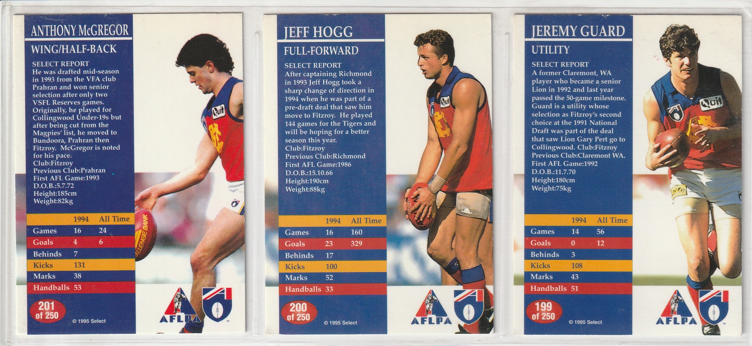 1995 AFL SELECT Series 1 - 201 ANTHONY McGREGOR 🏉💥🏉💥🏉 AFLPA