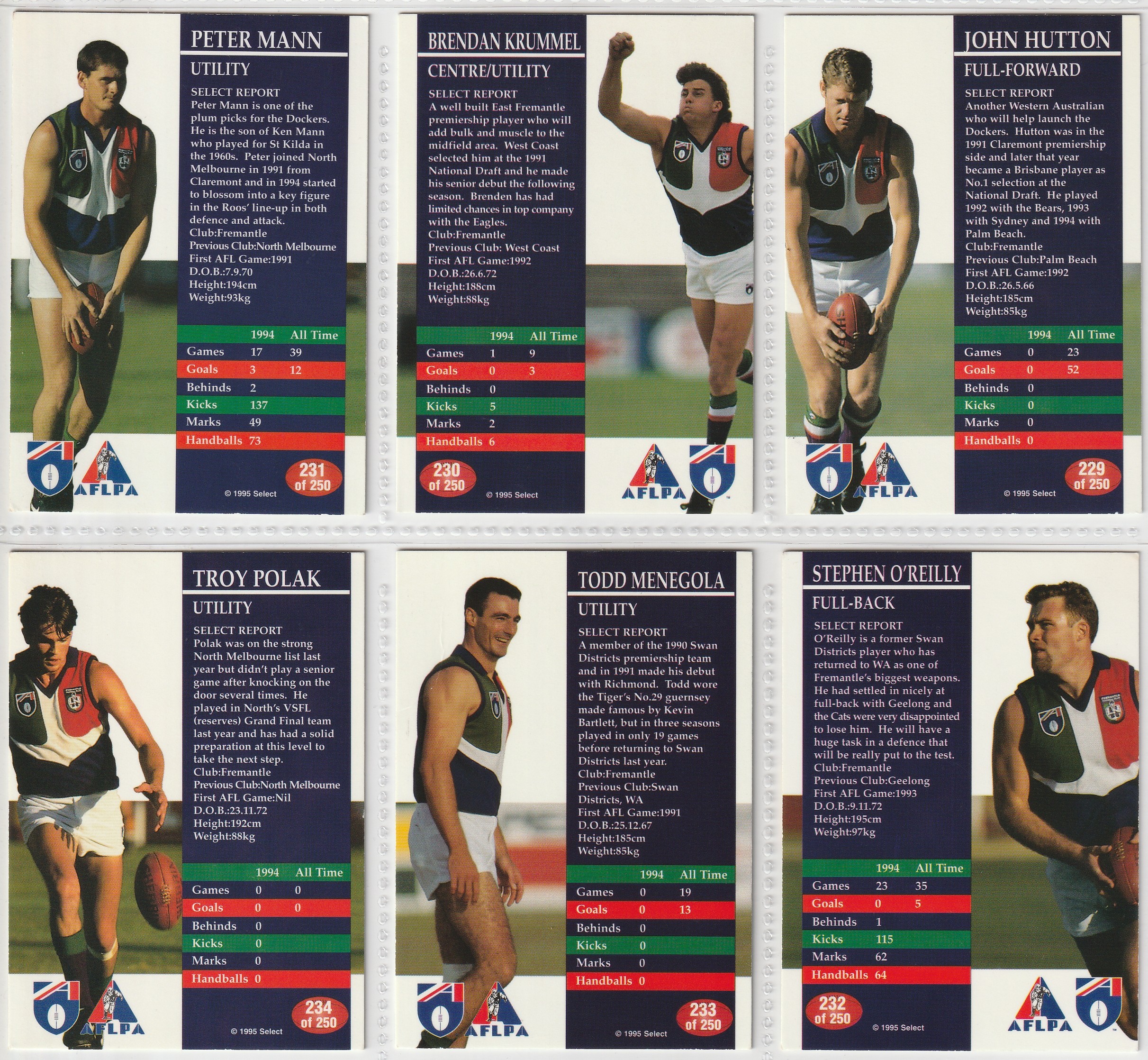 1995 AFL SELECT Series 1 - 233 TODD MENEGOLA 🏉💥🏉💥🏉 AFLPA