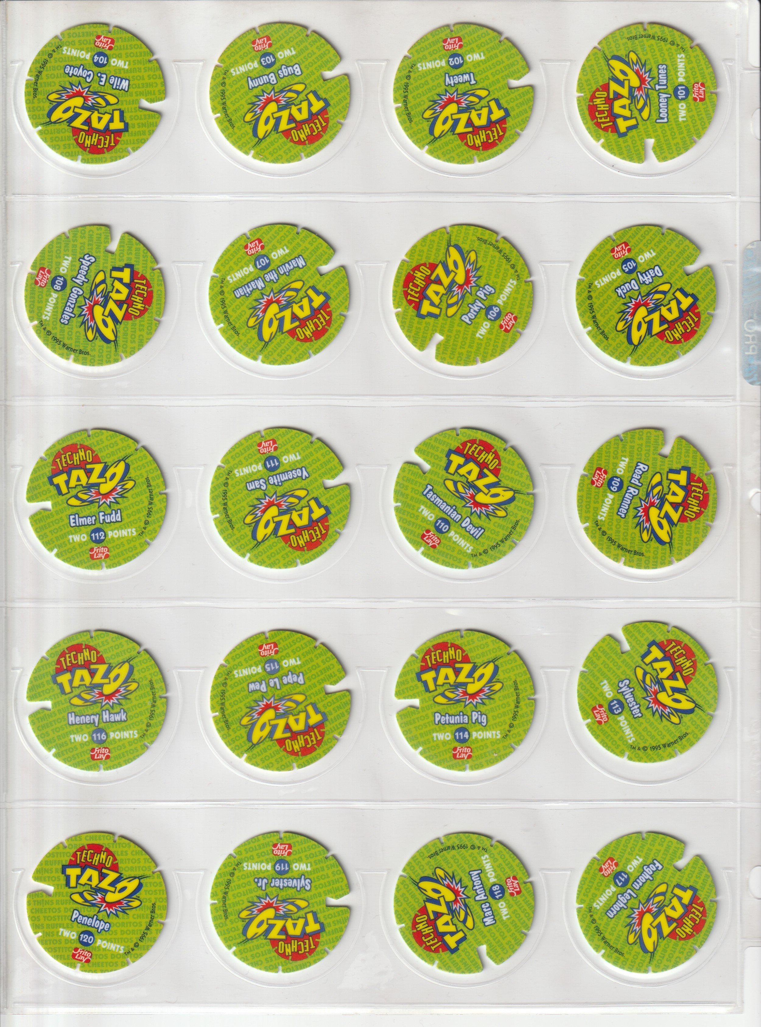 1995 LOONEY TUNES TECHNO TAZOS COMPLETE SET 101-120 🟢🟢🟢 MINT/PRISTINE CONDITION 🔥🟢🔥💨⚡ TAZO PICKERS ⚡