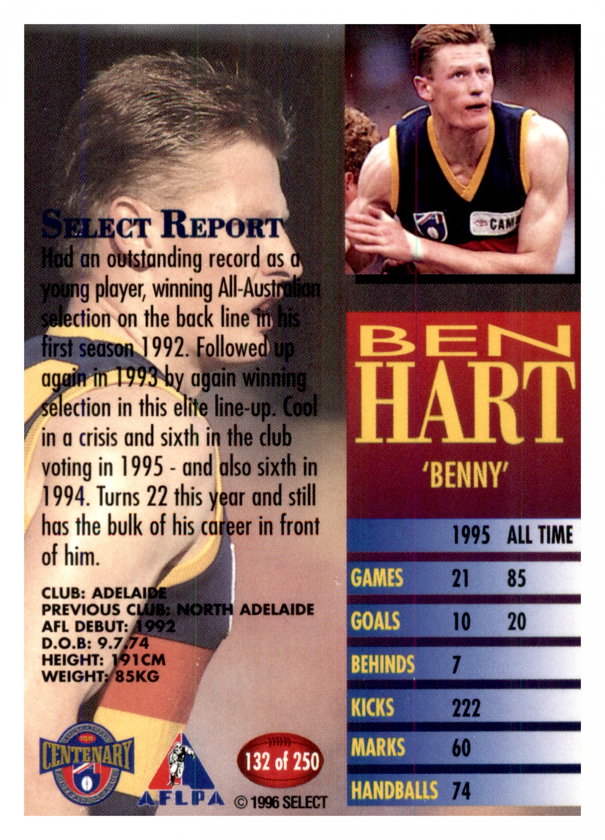 1996 AFL SELECT SERIES 1 #133 BEN HART - ADELAIDE CROWS