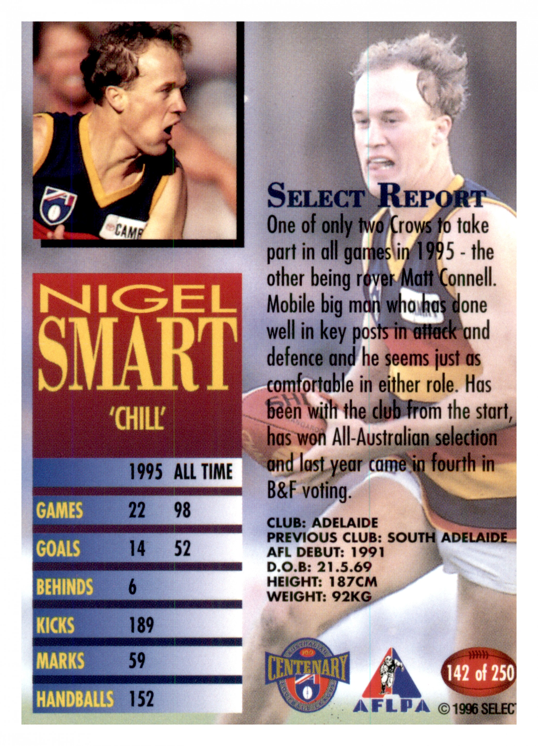 1996 AFL SELECT SERIES 1 #142 NIGEL SMART - ADELAIDE CROWS