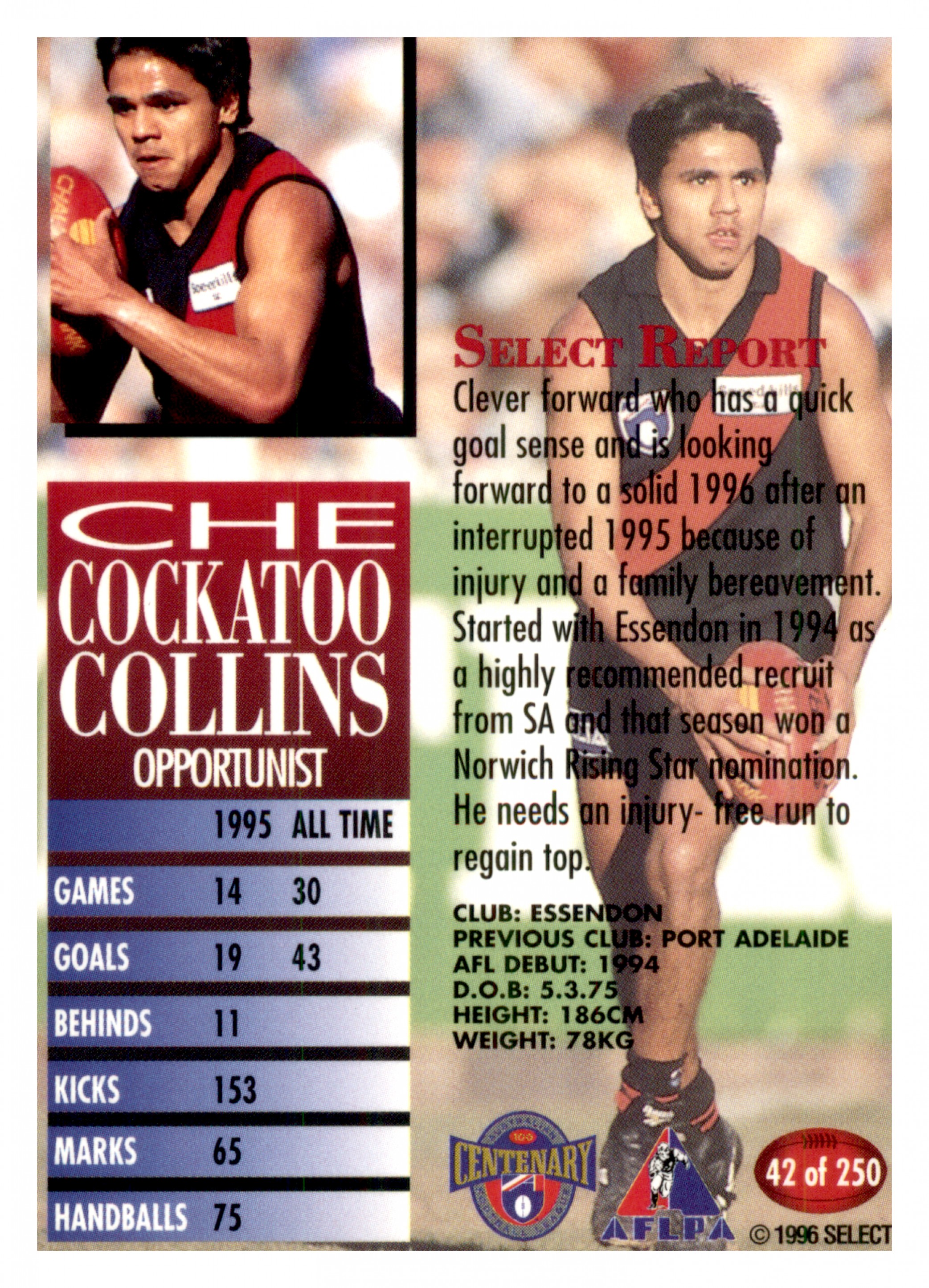 1996 AFL SELECT SERIES 1 #42 CHE COCKATOO-COLLINS - ESSENDON BOMBERS