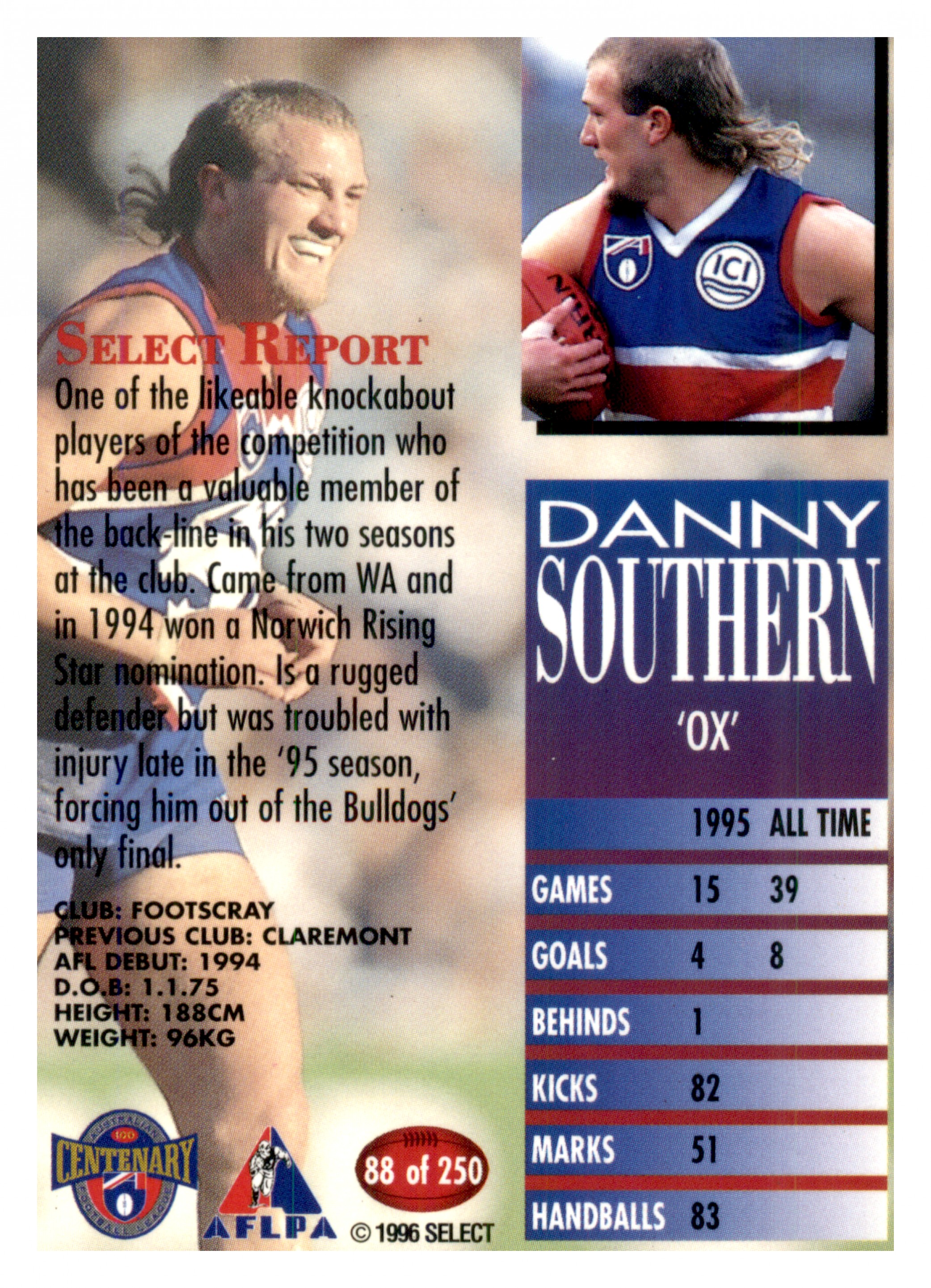 1996 AFL SELECT SERIES 1 #88 DANNY SOUTHERN - FOOTSCRAY / WESTERN BULLDOGS