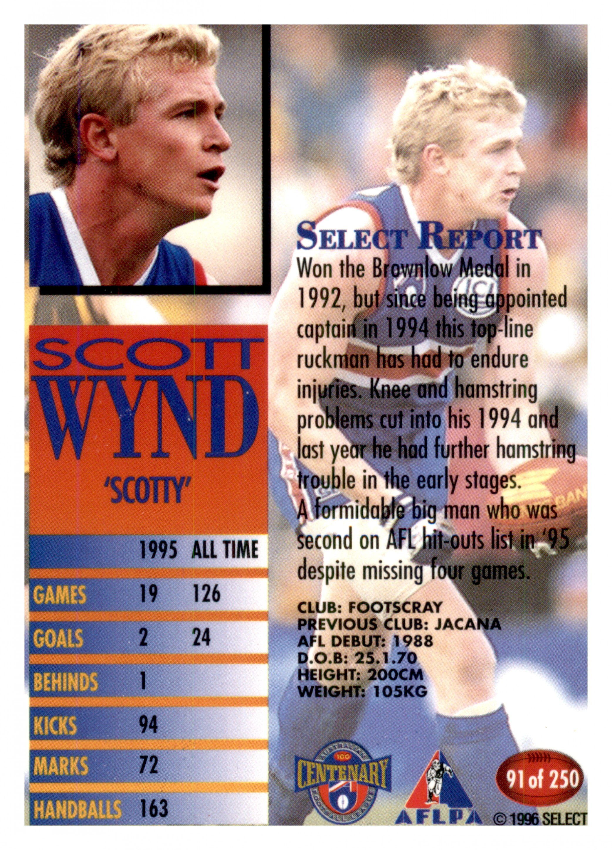 1996 AFL SELECT SERIES 1 #91 SCOTT WYND - FOOTSCRAY / WESTERN BULLDOGS
