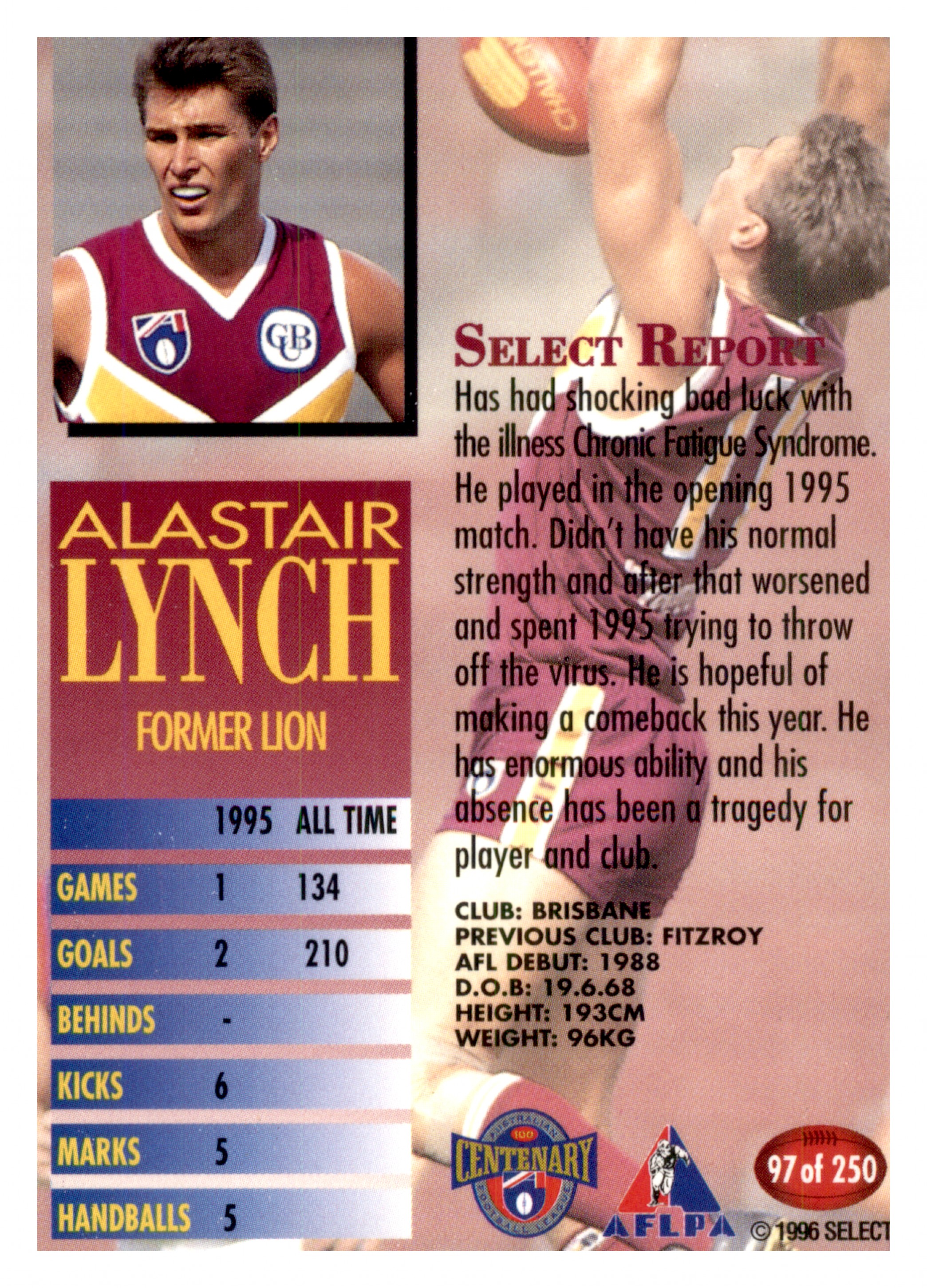 1996 AFL SELECT SERIES 1 #97 ALASTAIR LYNCH - BRISBANE BEARS