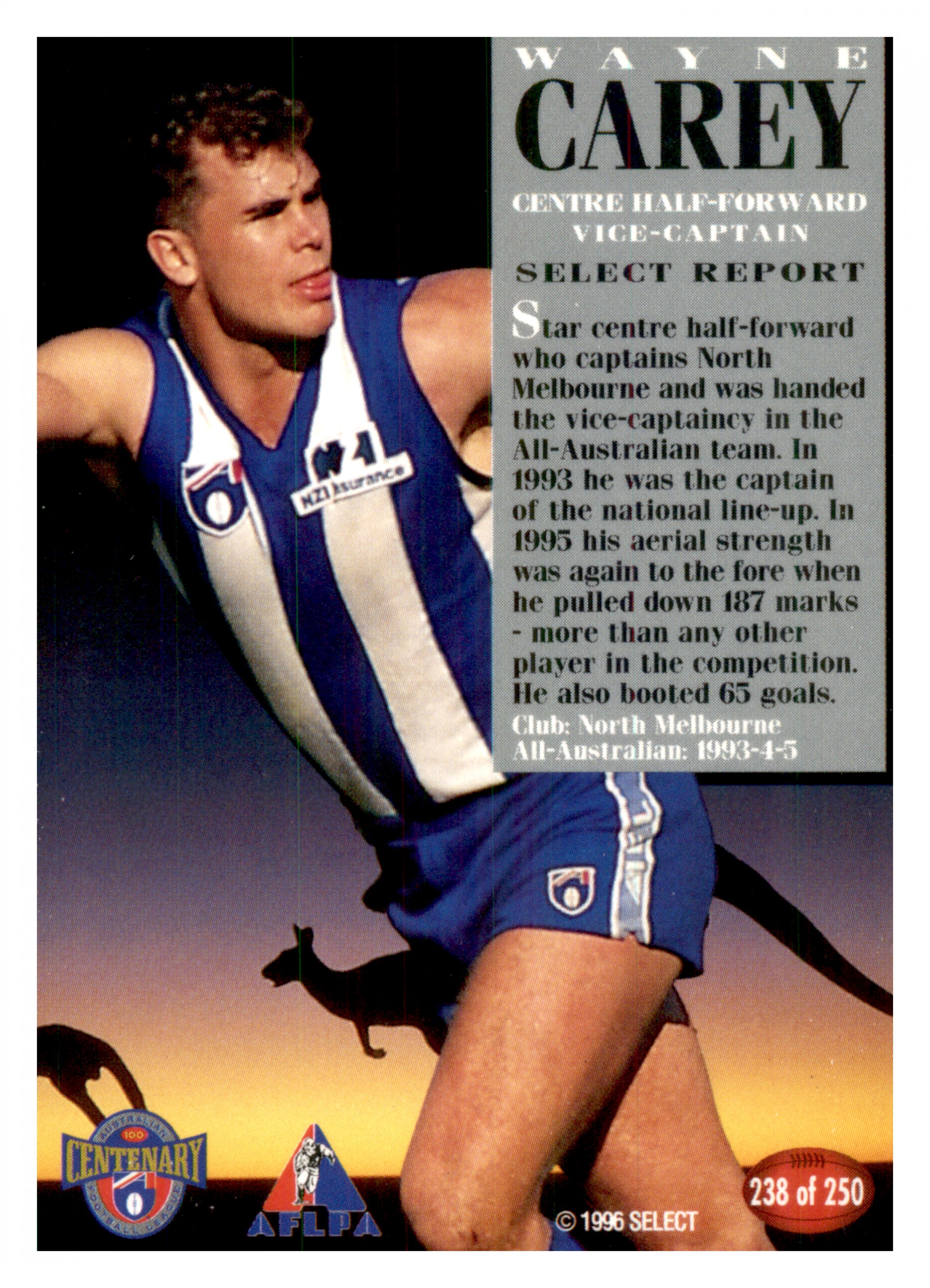 1996 AFL SELECT SERIES 1 ALL AUSTRALIAN #238 WAYNE CAREY - NORTH MELBOURNE KANGAROOS