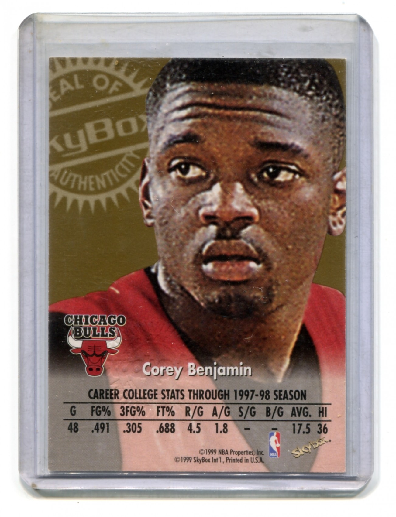 This listing is for 1998-99 SkyBox Premium Autographics #12 Corey Benjamin - Chicago Bulls.