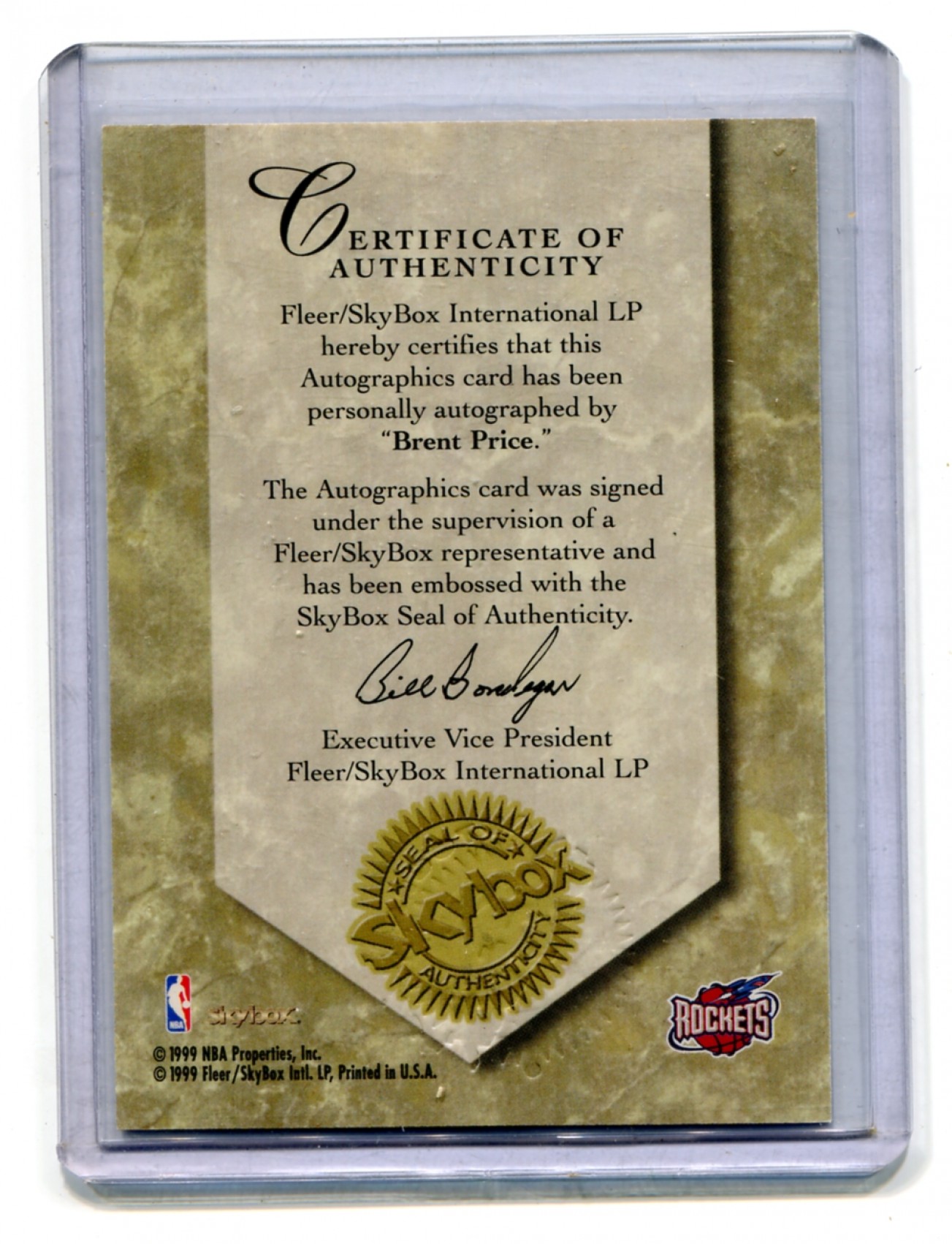This listing is for 1999-00 SkyBox Premium Autographics #89 Brent Price - Vancouver Grizzlies.