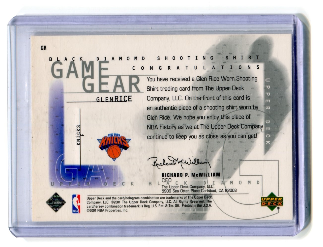 2000-01 Black Diamond Game Gear #GR Glen Rice - New York Knicks