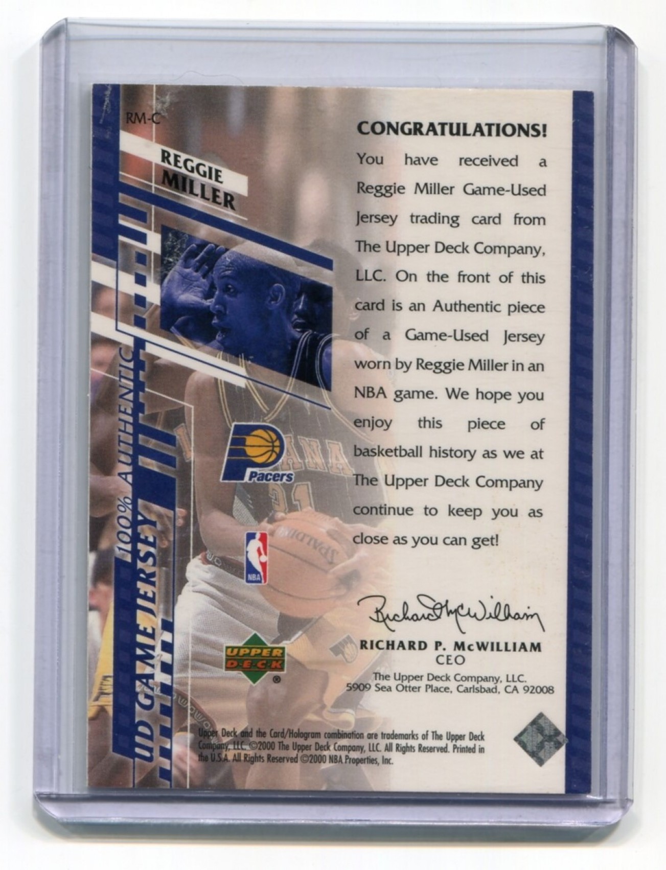 This listing is for 2000-01 Upper Deck Game Jerseys 1 #RMC Reggie Miller 2CLR Pacers.