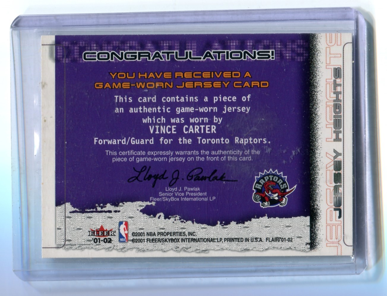 This listing is for 2001-02 Flair Jersey Heights #13 Vince Carter - Toronto Raptors.