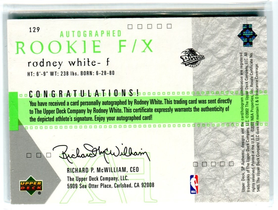 This listing is for 2001-02 SP Authentic #129 Rodney White AU RC #d/1525 - Detroit Pistons.