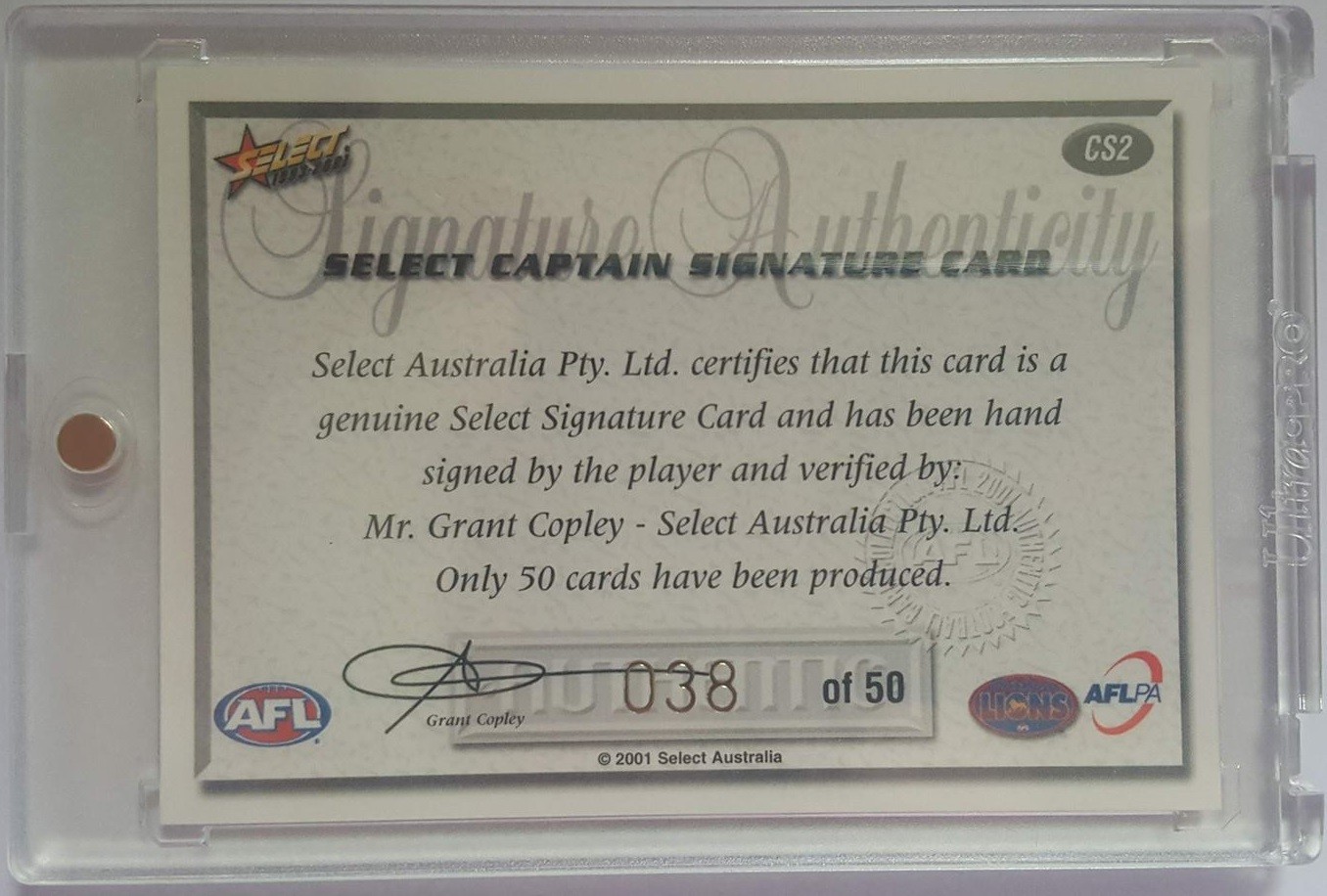 Item: 2001 Select AFL Authentic Captain Signature Card CS2 Michael Voss 38/50 - Brisbane Lions + REDEMPTION CARD not pictured
