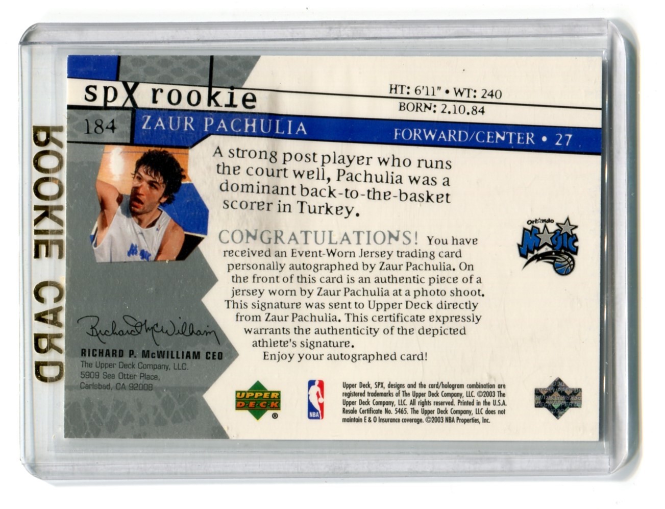 This listing is for 2003-04 SPx #184 Zaur Pachulia JSY AU RC /1999 - Orlando Magic.