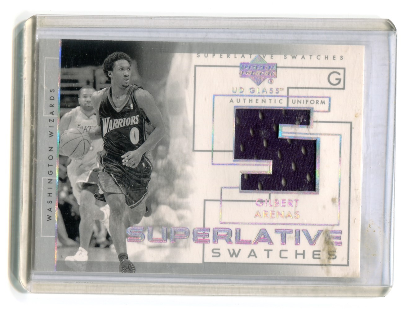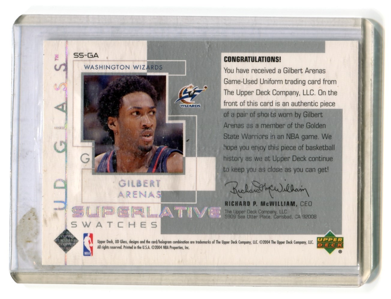 This listing is for 2003-04 UD Glass Superlative Swatches #SSGA Gilbert Arenas - Washington Wizards.