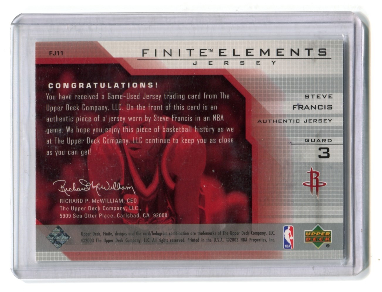 This listing is for 2003-04 Upper Deck Finite Elements Jerseys #FJ11 Steve Francis 2CLR Patch - Houston Rockets.