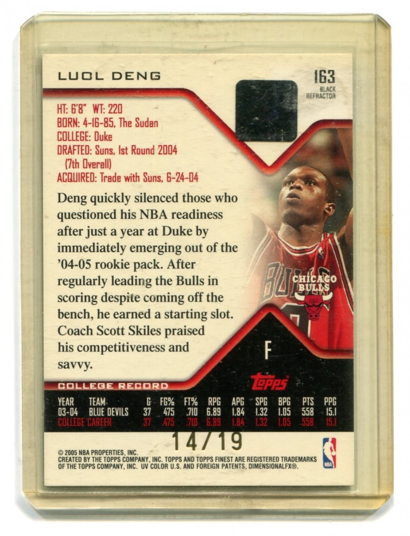 This listing is for 2004-05 Finest Refractors Black #163 Luol Deng AU 14/19 - Chicago Bulls.