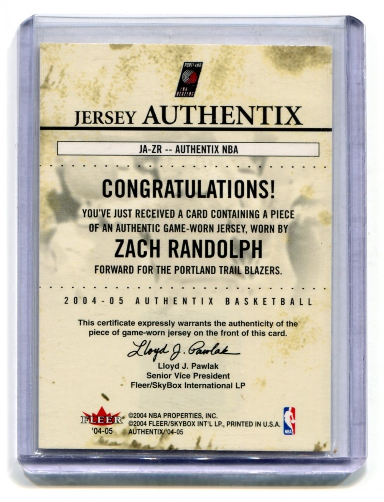 This listing is for 2004-05 Fleer Authentix Jerseys 150 #35 Zach Randolph 071/150 - Portland Trail Blazers.