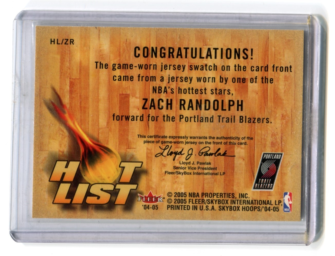 This listing is for 2004-05 Hoops Hot List Jerseys #ZR Zach Randolph - Portland Trail Blazers.