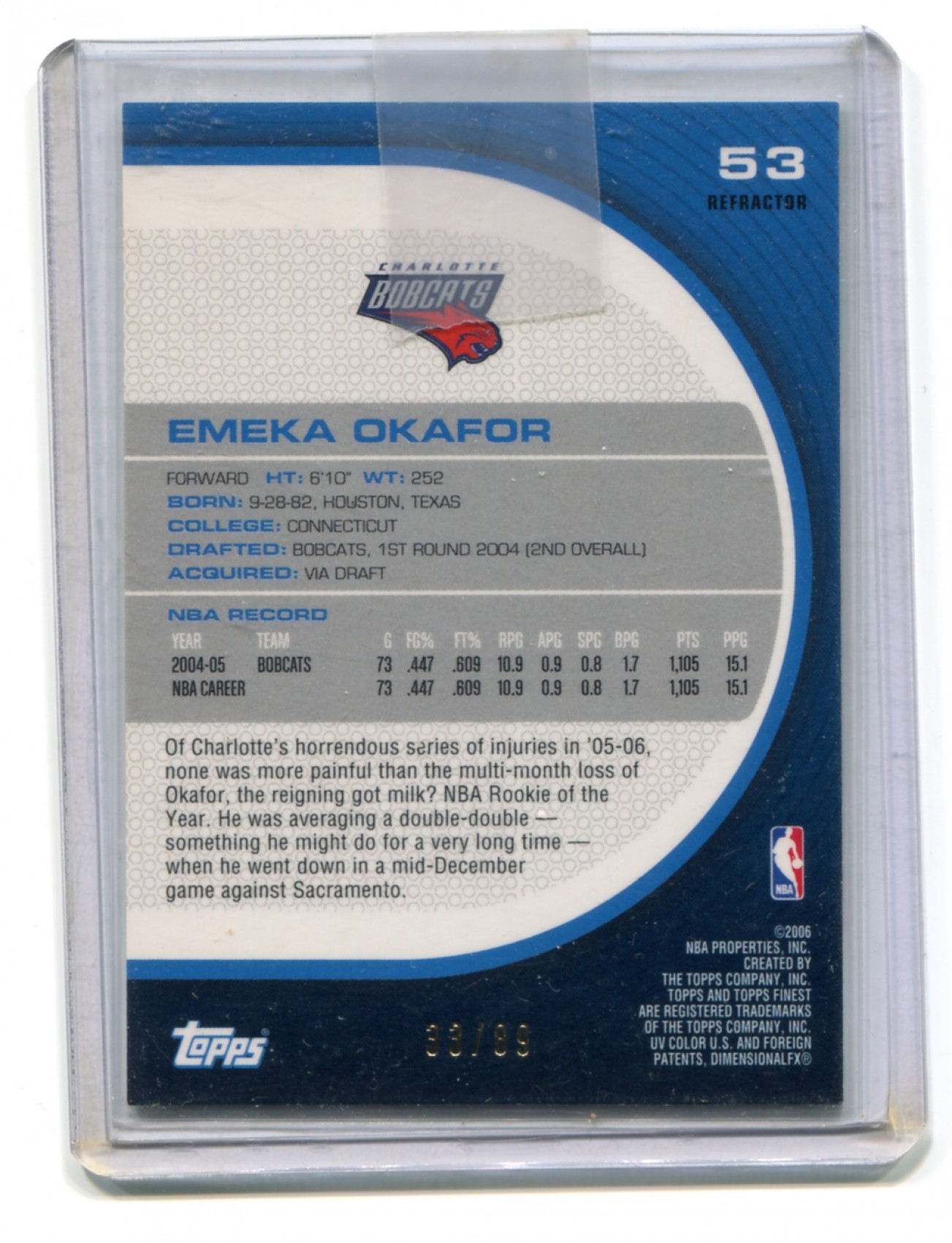 This listing is for 2005-06 Finest Refractors Green #53 Emeka Okafor 33/89 - Charlotte Bobcats.