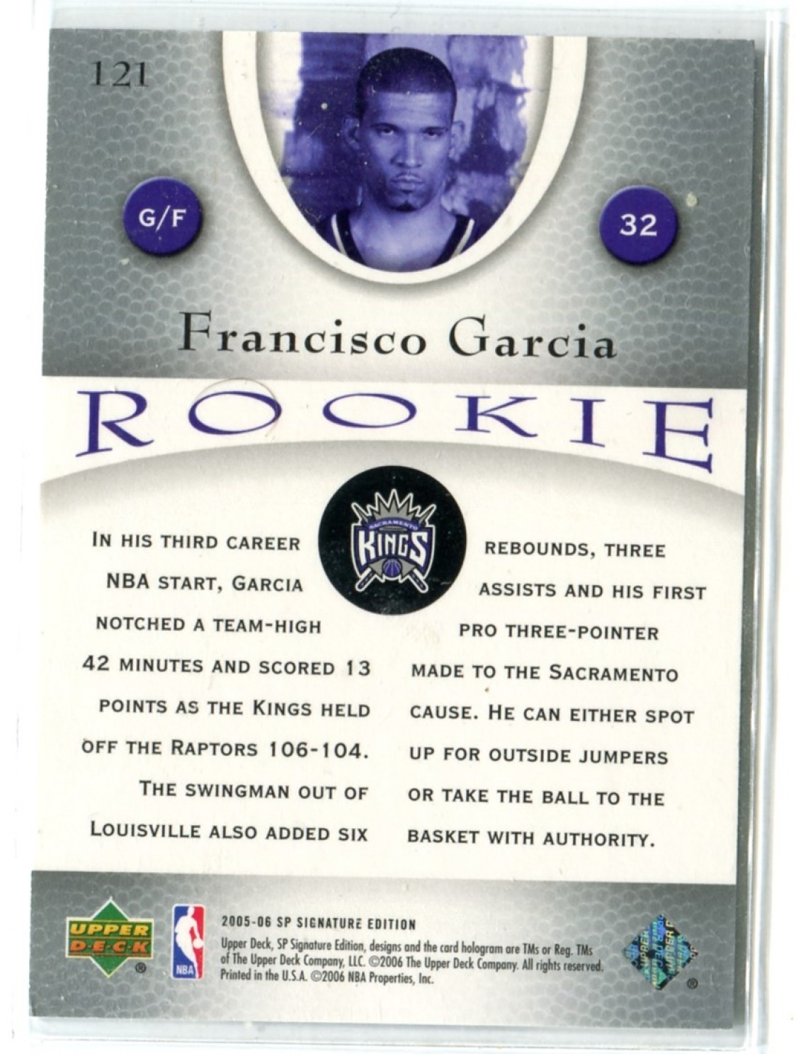 This listing is for 2005-06 SP Signature Edition #121 Francisco Garcia RC #d/499 - Sacramento Kings.