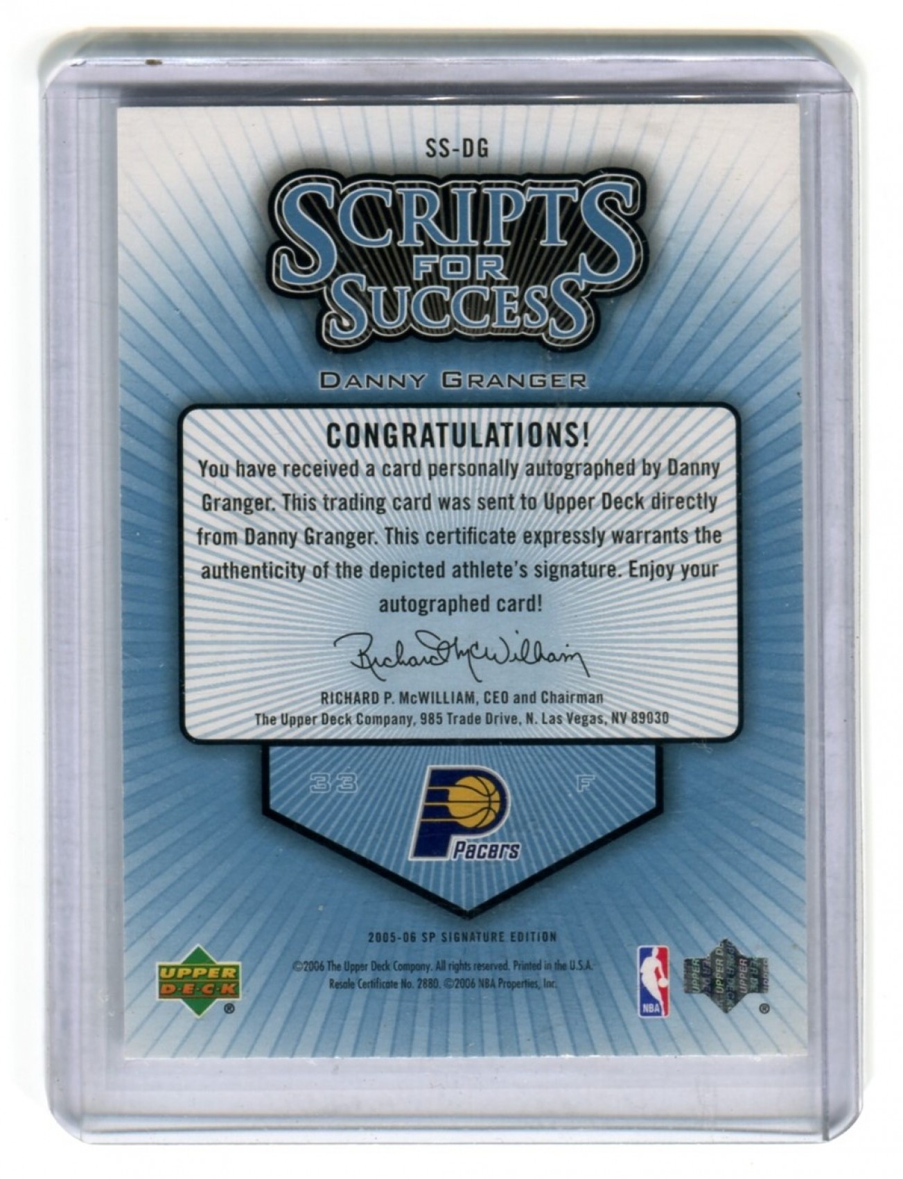 This listing is for 2005-06 SP Signature Edition Scripts for Success #DG Danny Granger /200 - Indiana Pacers.