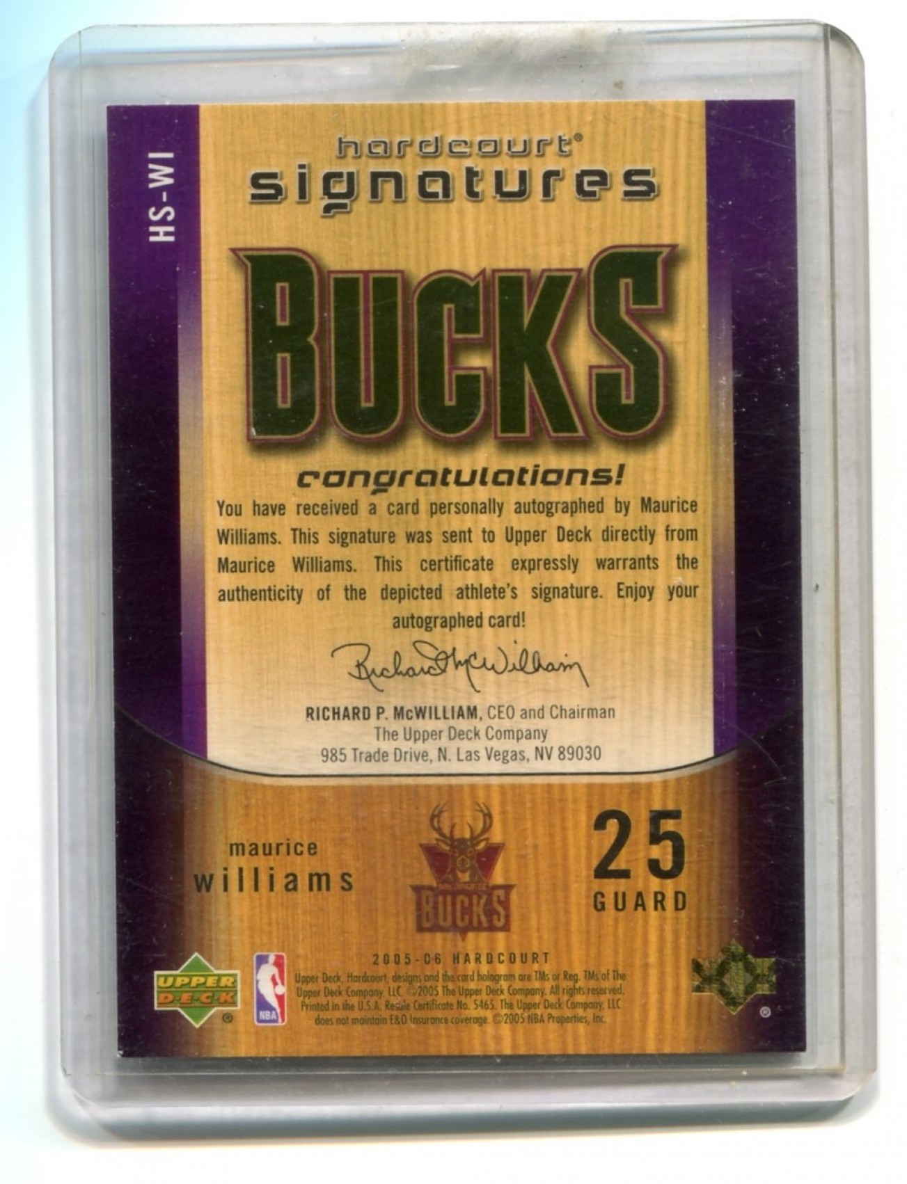 2005-06 Upper Deck Hardcourt Signatures #WI Maurice Williams - Milwaukee Bucks