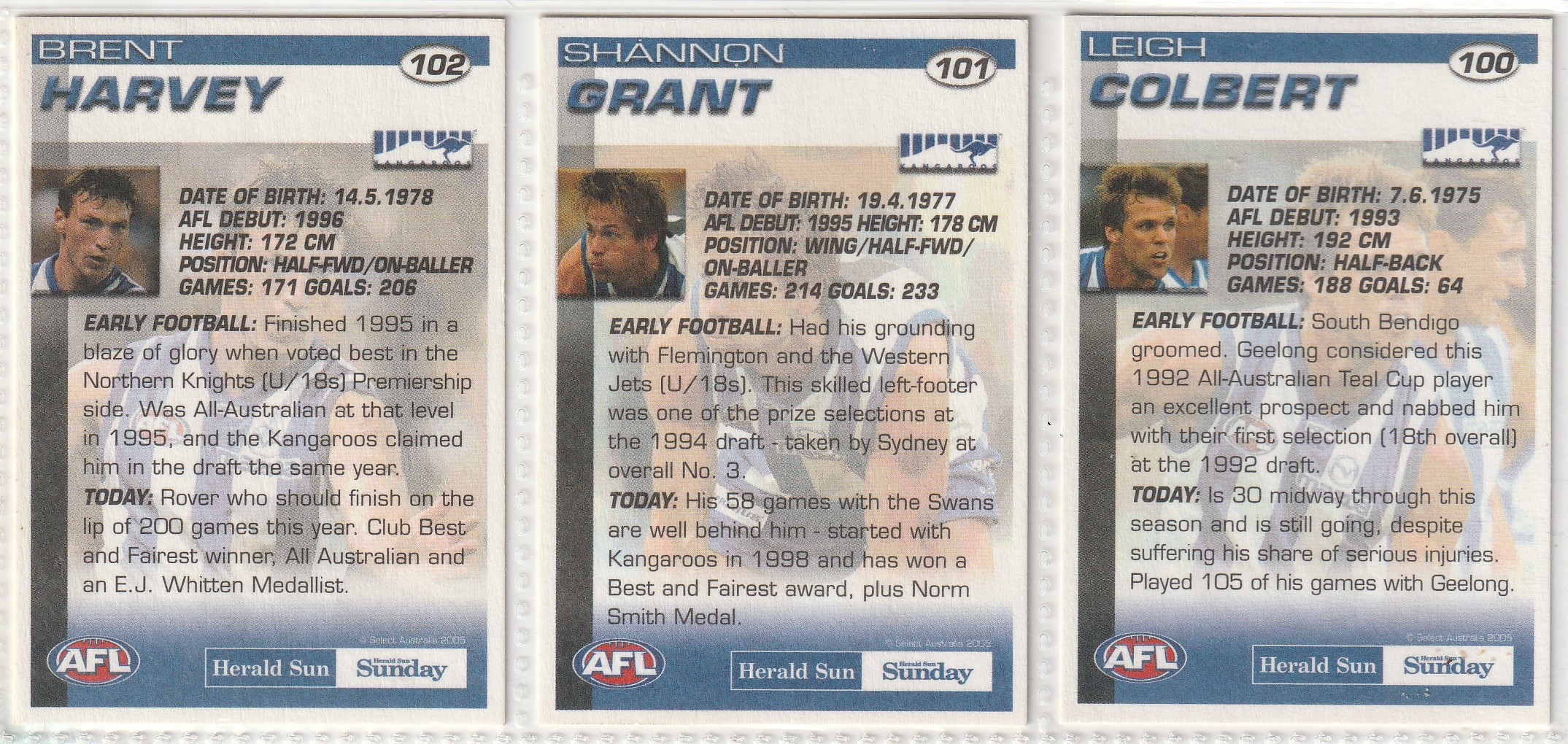 2005 AFL SELECT Herald Sun - 100 LEIGH COLBERT 🏉🔴⚪🏉