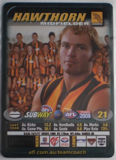 2005 TEAMCOACH RICHARD VANDENBERG SUBWAY CAPTAIN WILDCARD - HAWTHORN HAWKS