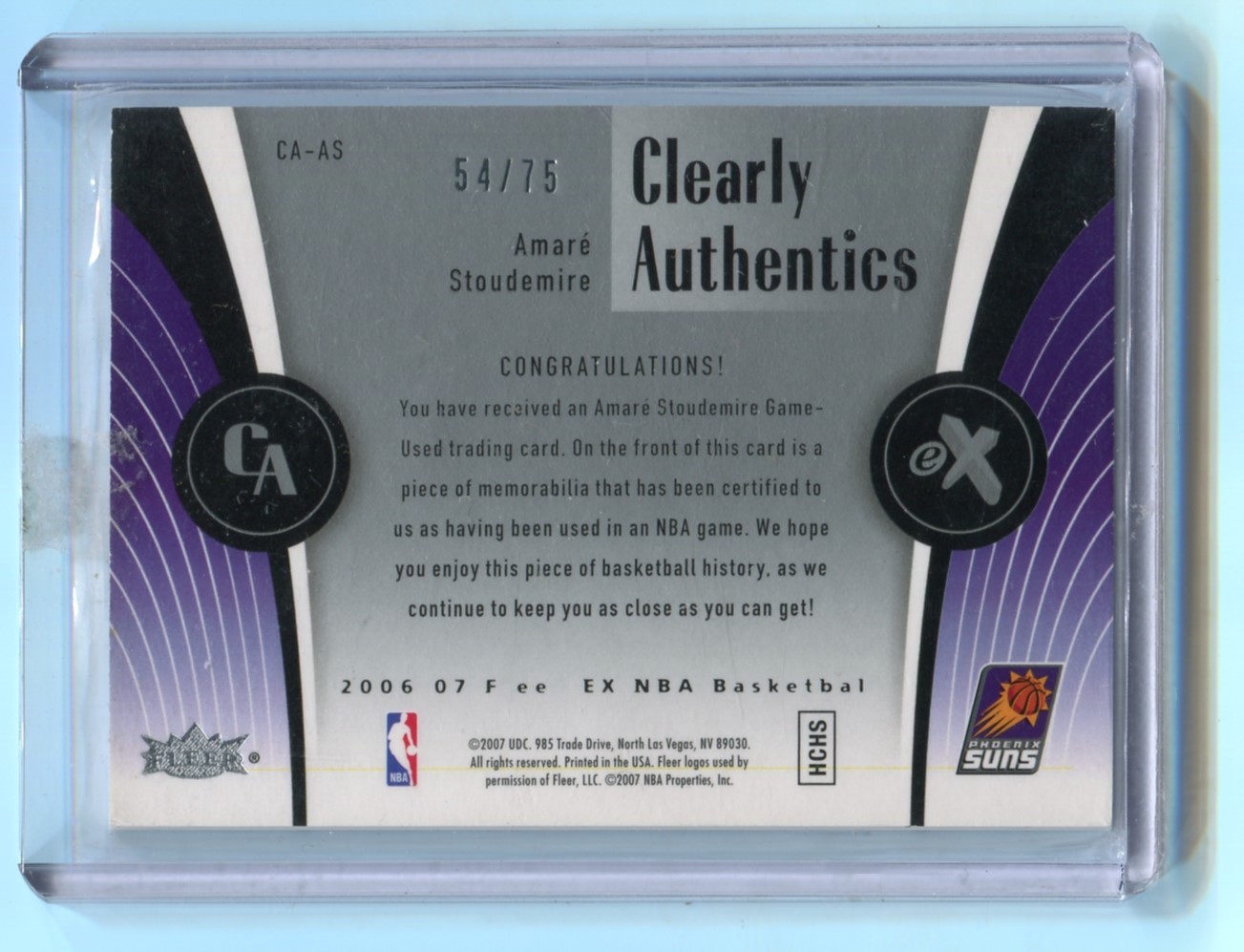 This listing is for 2006-07 E-X Clearly Authentics Patches #CAAS Amare Stoudemire 54/75 2CLR Game Used Patch - Pheonix Suns.