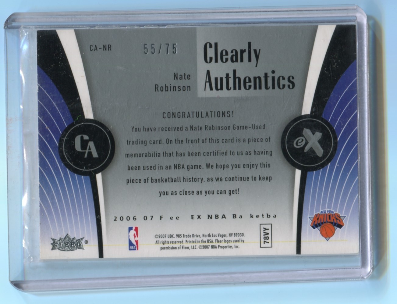 This listing is for 2006-07 E-X Clearly Authentics Patches #CANR Nate Robinson numbered 55/75 - Knicks.