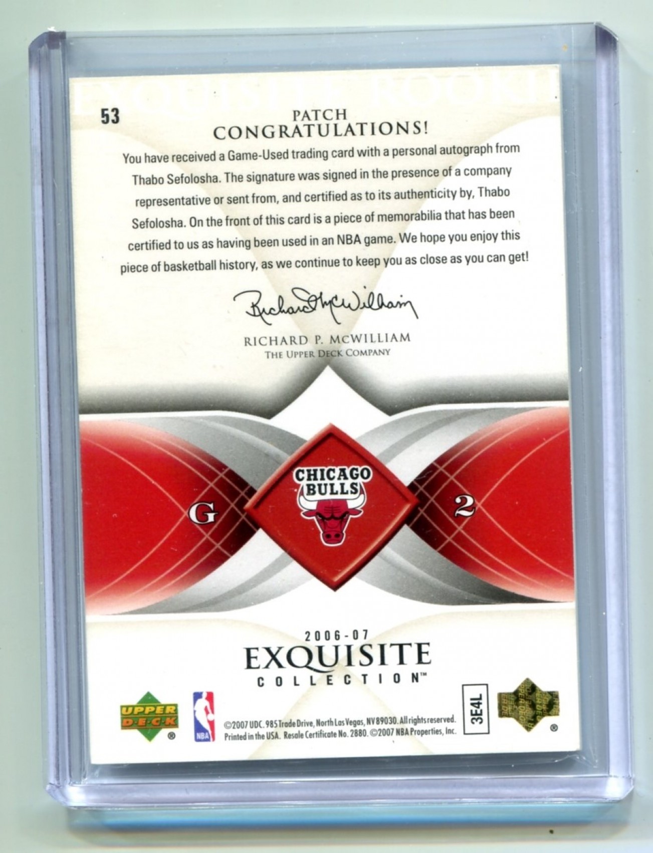 This listing is for 2006-07 Exquisite Collection #53 Thabo Sefolosha 119/225 3CLR JSY AU RC Rookie - Chicago Bulls.