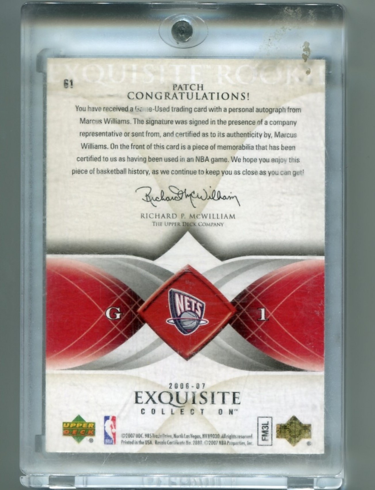 2006-07 Exquisite Collection #61 Marcus Williams JSY Jersey AU Autograph RC Rookie 4CLR Patch 058/225 Nets