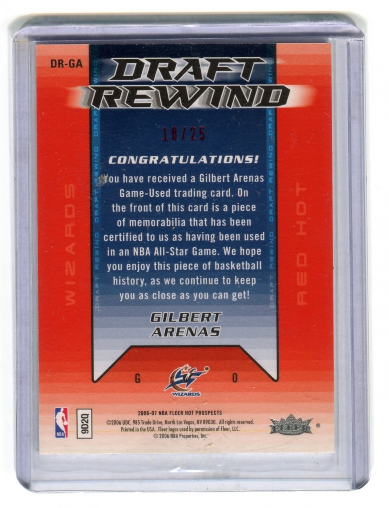 This listing is for 2006-07 Fleer Hot Prospects Draft Rewind Memorabilia Red Hot #GA Gilbert Arenas 10/25 - Washington Wizards.