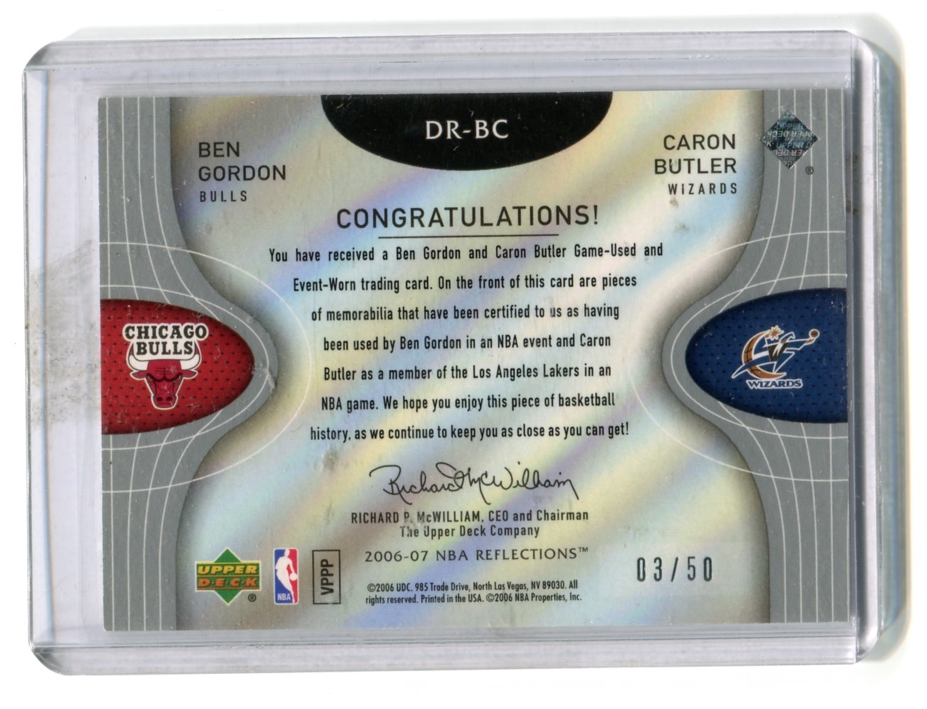 This listing is for 2006-07 Reflections Dual Fabric Copper #BC Ben Gordon / Caron Butler 03/50 - Chicago Bulls / Washington Wizards.