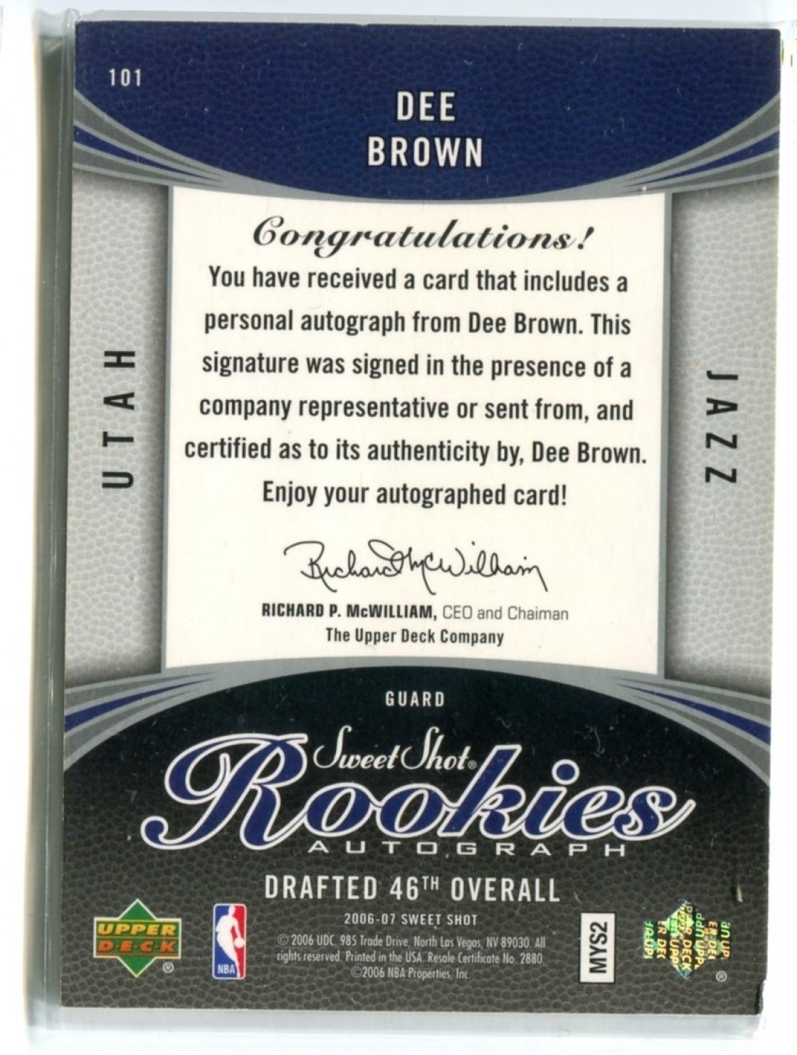 This listing is for 2006-07 Sweet Shot #101 Dee Brown AU RC #d/799 - Utah Jazz.
