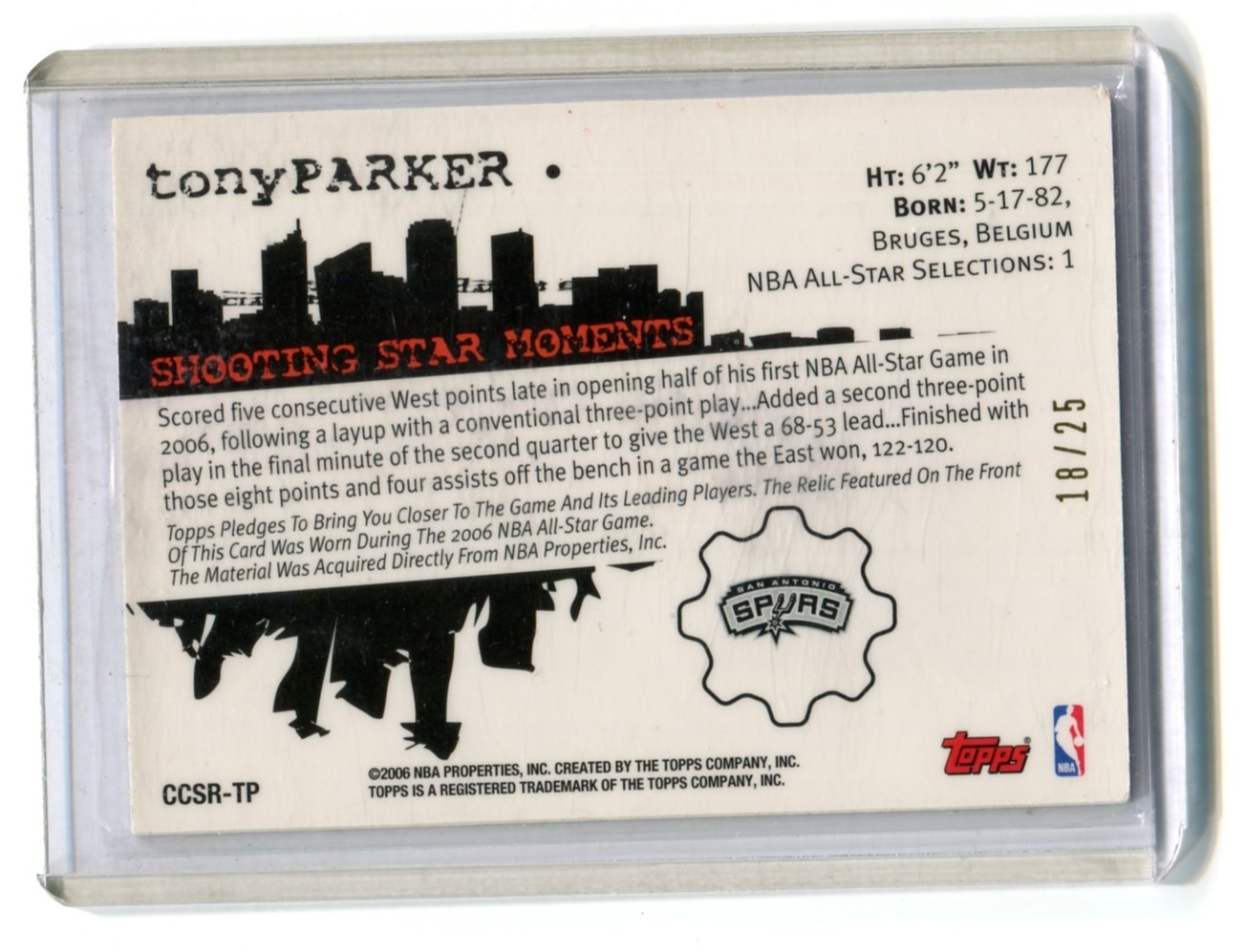 This listing is for 2006-07 Topps Clutch City Stars Relics Gold #TP Tony Parker 18/25 - San Antonio Spurs.