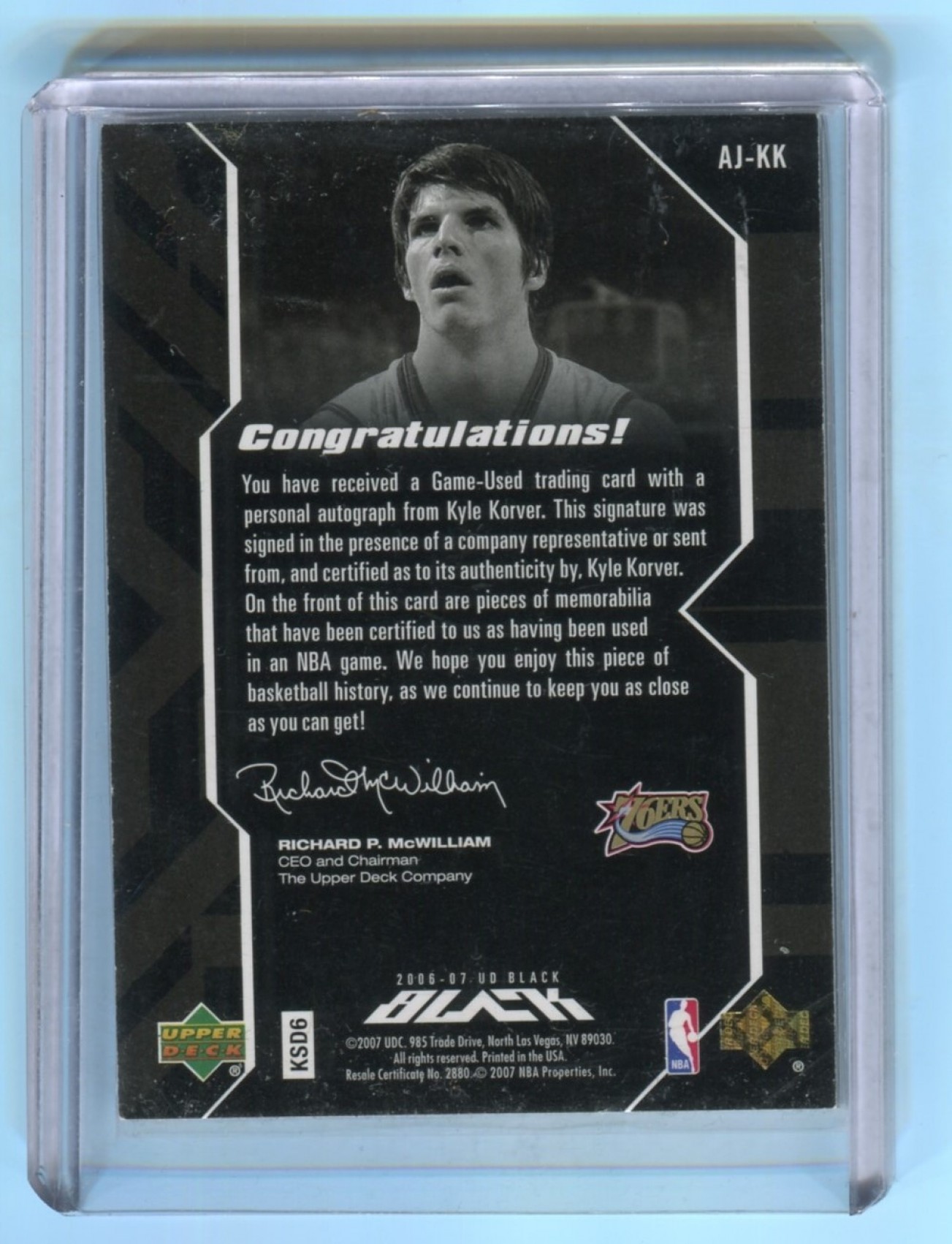 This listing is for 2006-07 UD Black Jerseys Autographs #KK Kyle Korver /50 - 76ers.