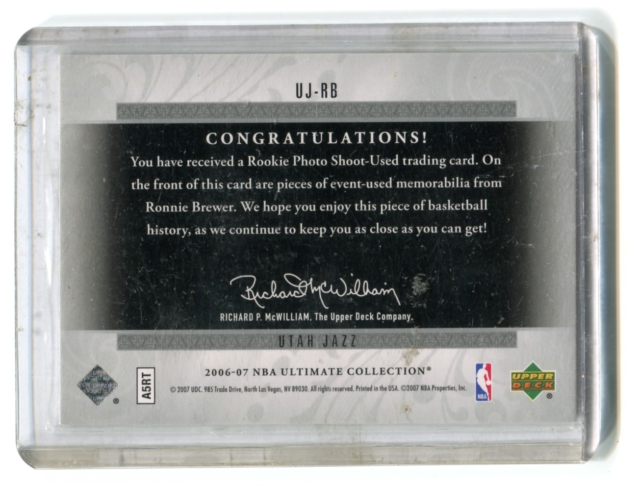 This listing is for 2006-07 Ultimate Collection Jerseys Dual #UJRB Ronnie Brewer 03/25 - Utah Jazz.
